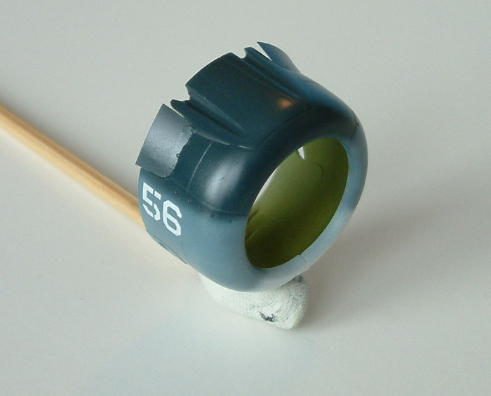 The only other mod that I made was to cut off the moulded tail wheel in preparation to receive a replacement larger pneumatic wheel that land based SBDs almost always carried – certainly NZ5056 had a larger wheel. I found a suitable wheel in the spares box which I modified with a piece of hypodermic needle to represent the shaft.