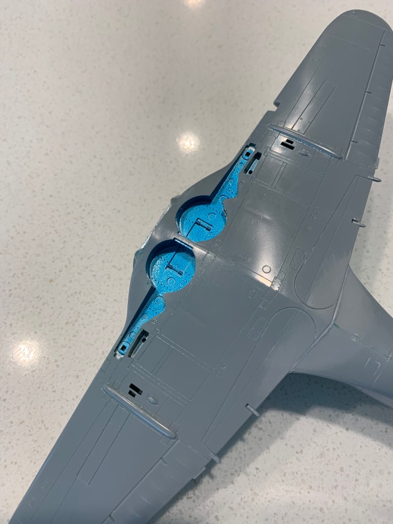 I really did not like the Vallejo Nakajima Interior Green; I replaced it with aoke created by painting the wheel well silver and then clear blue, both Tamiya.