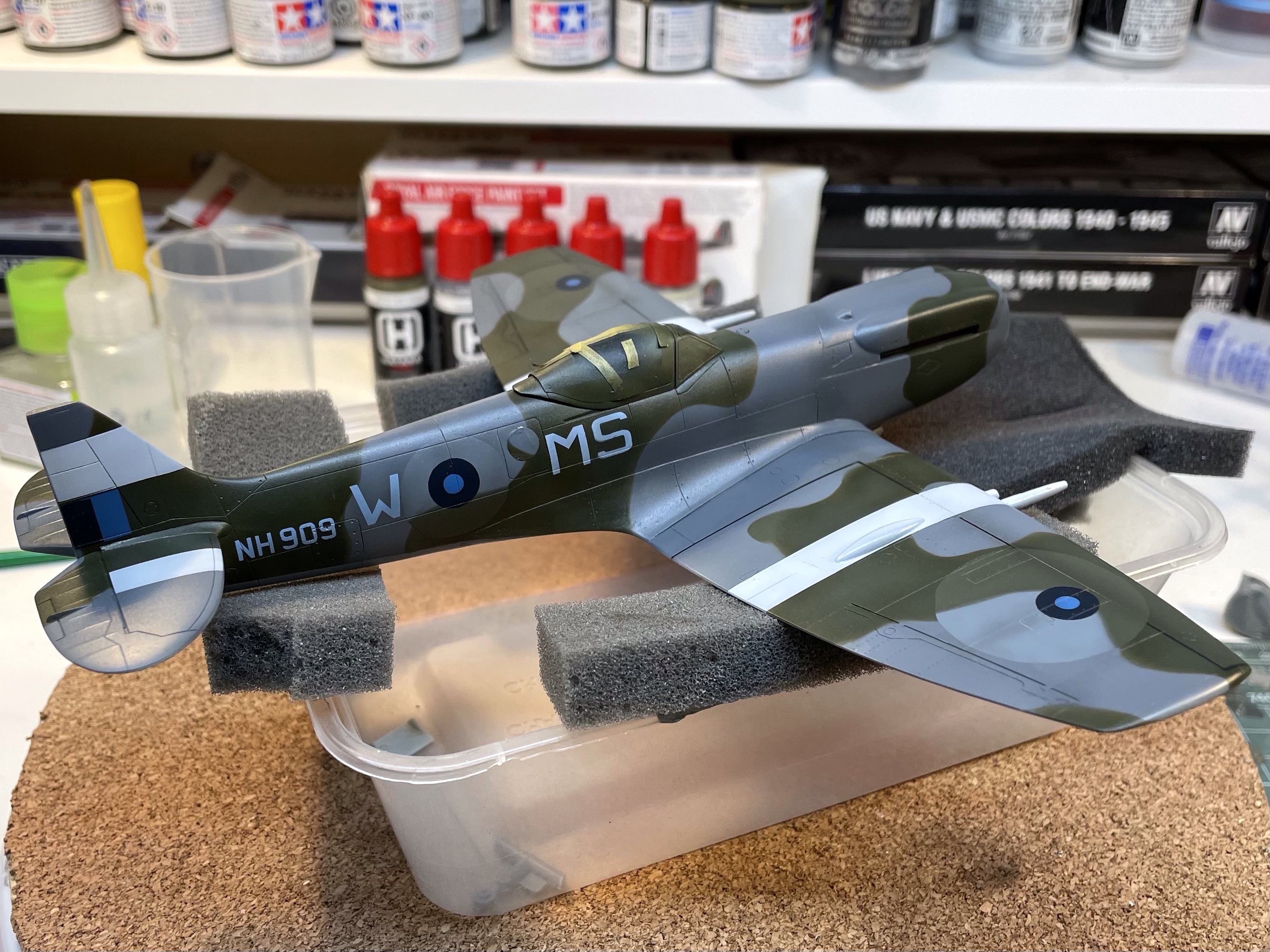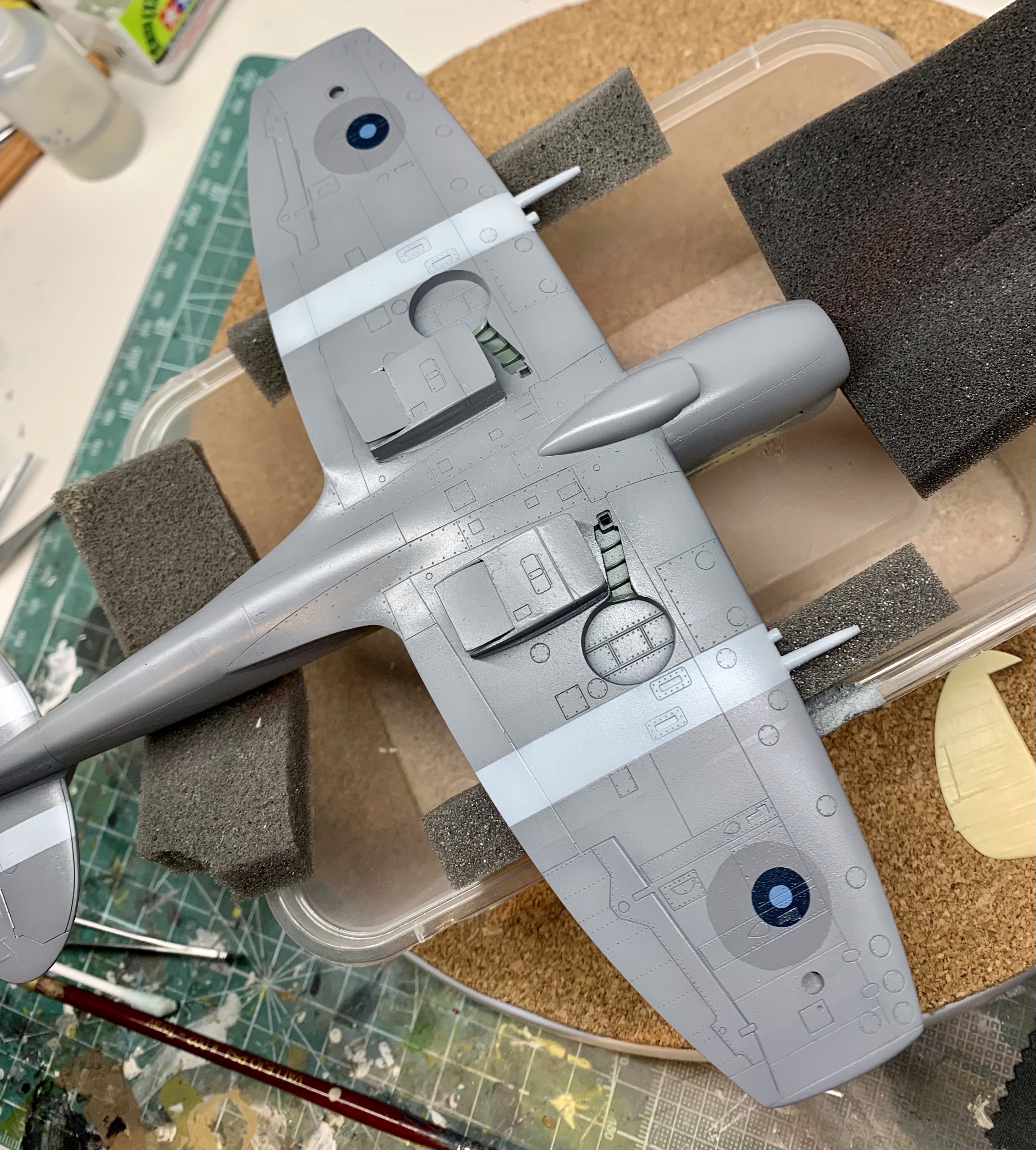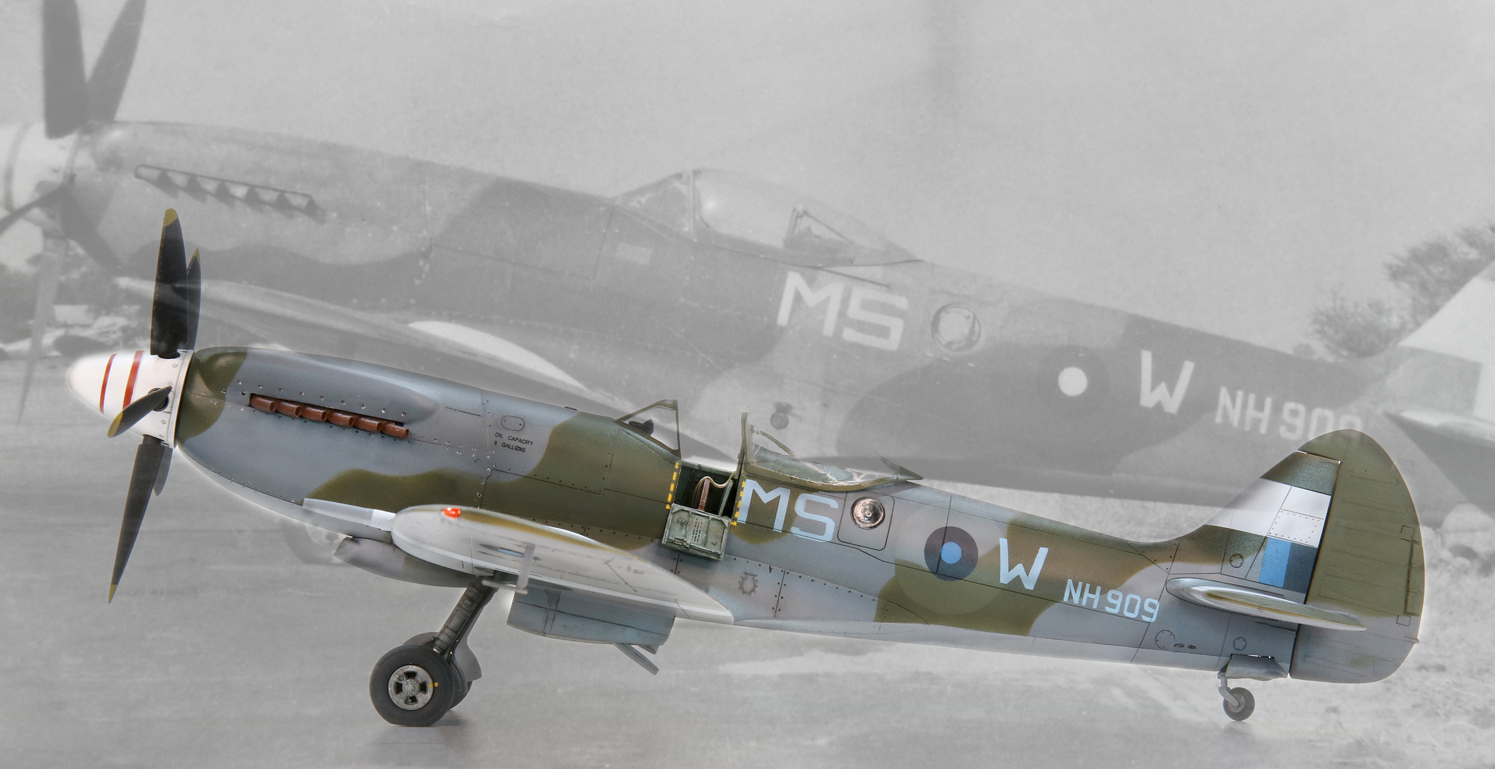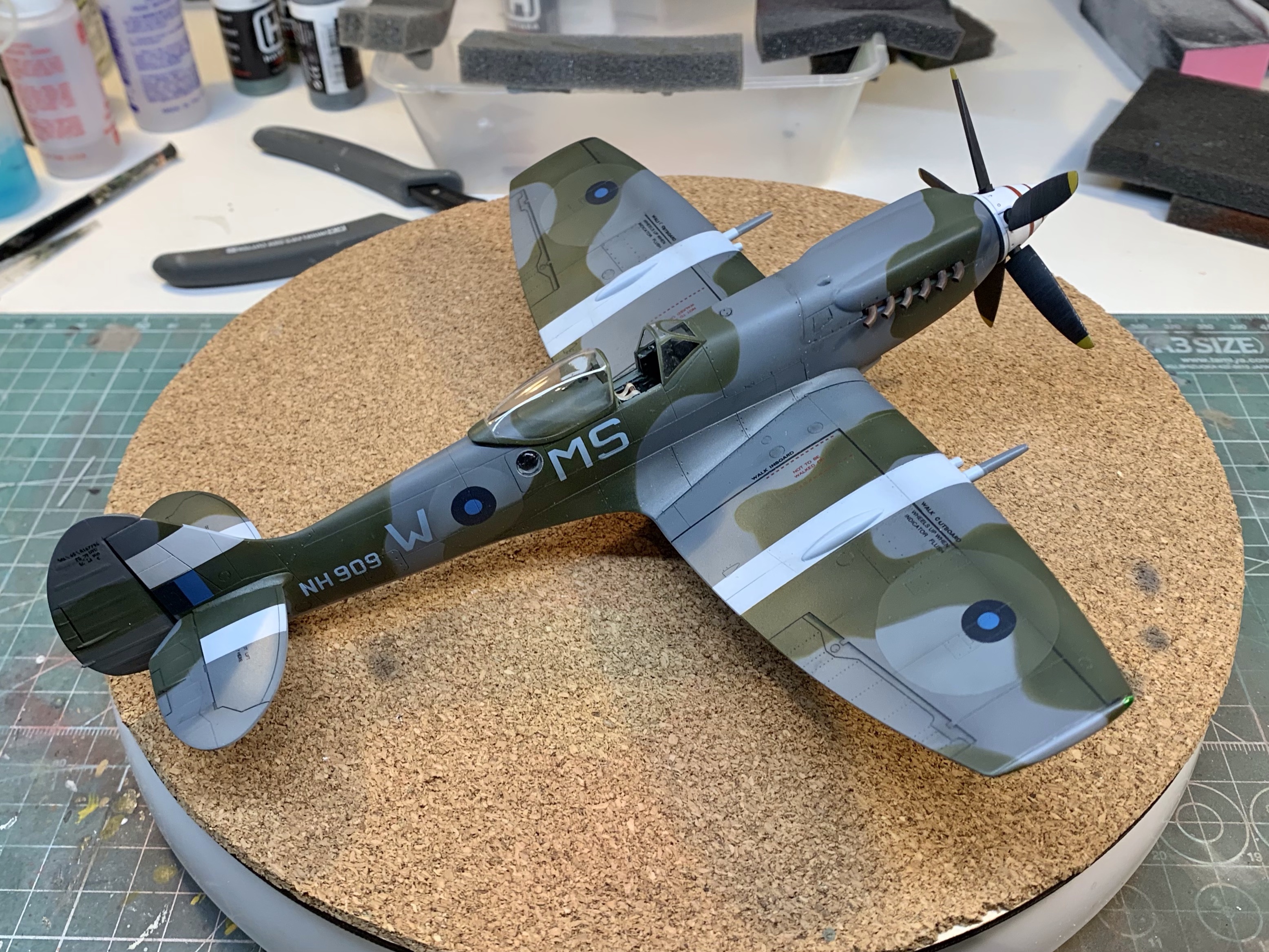 The purists will still – quite rightly – find fault in the overall shape of the Academy kit. It’s just a bit thick everywhere. But with the correction it’s not far off and in a way its faults further emphasis the brutish look of the Griffon Spitfire as compared to its Merlin predecessor. I’m quite happy with it.