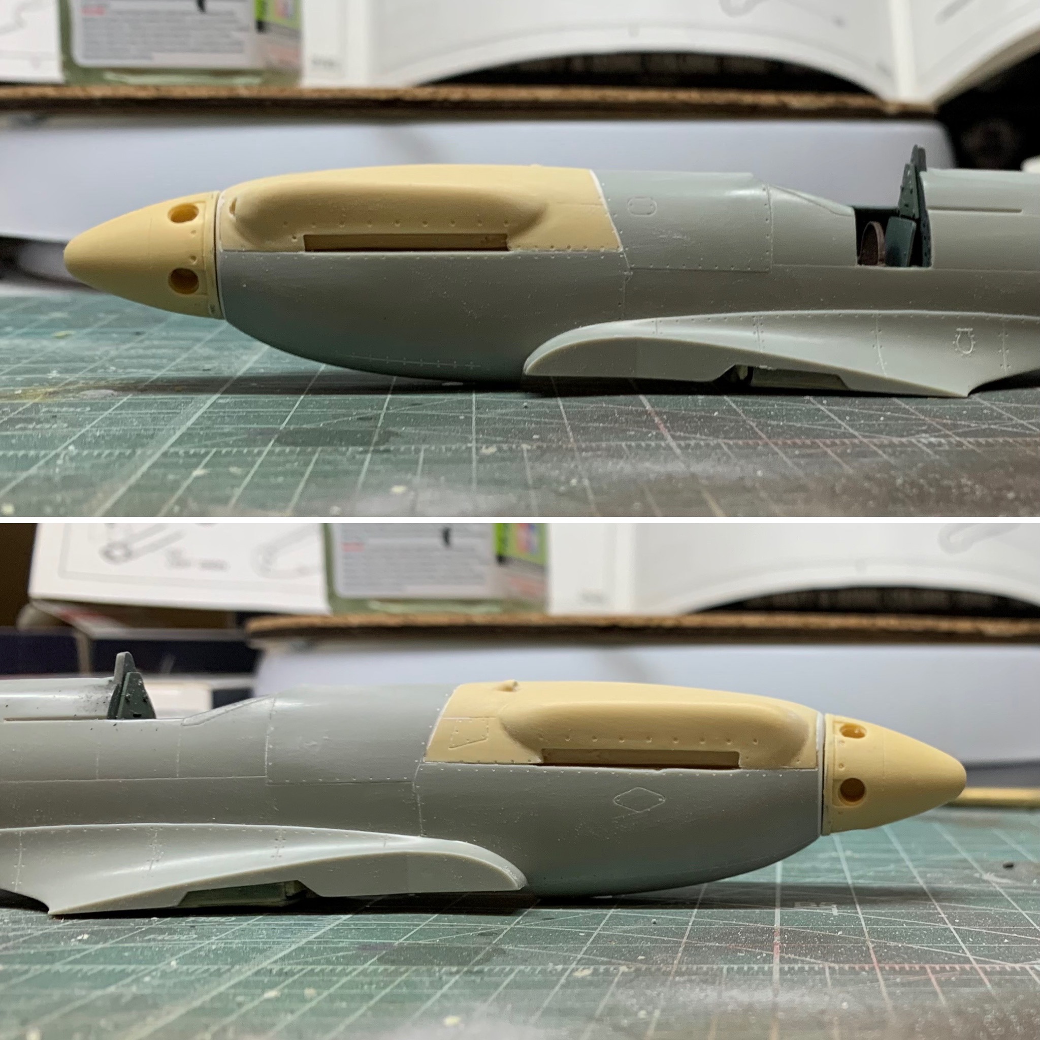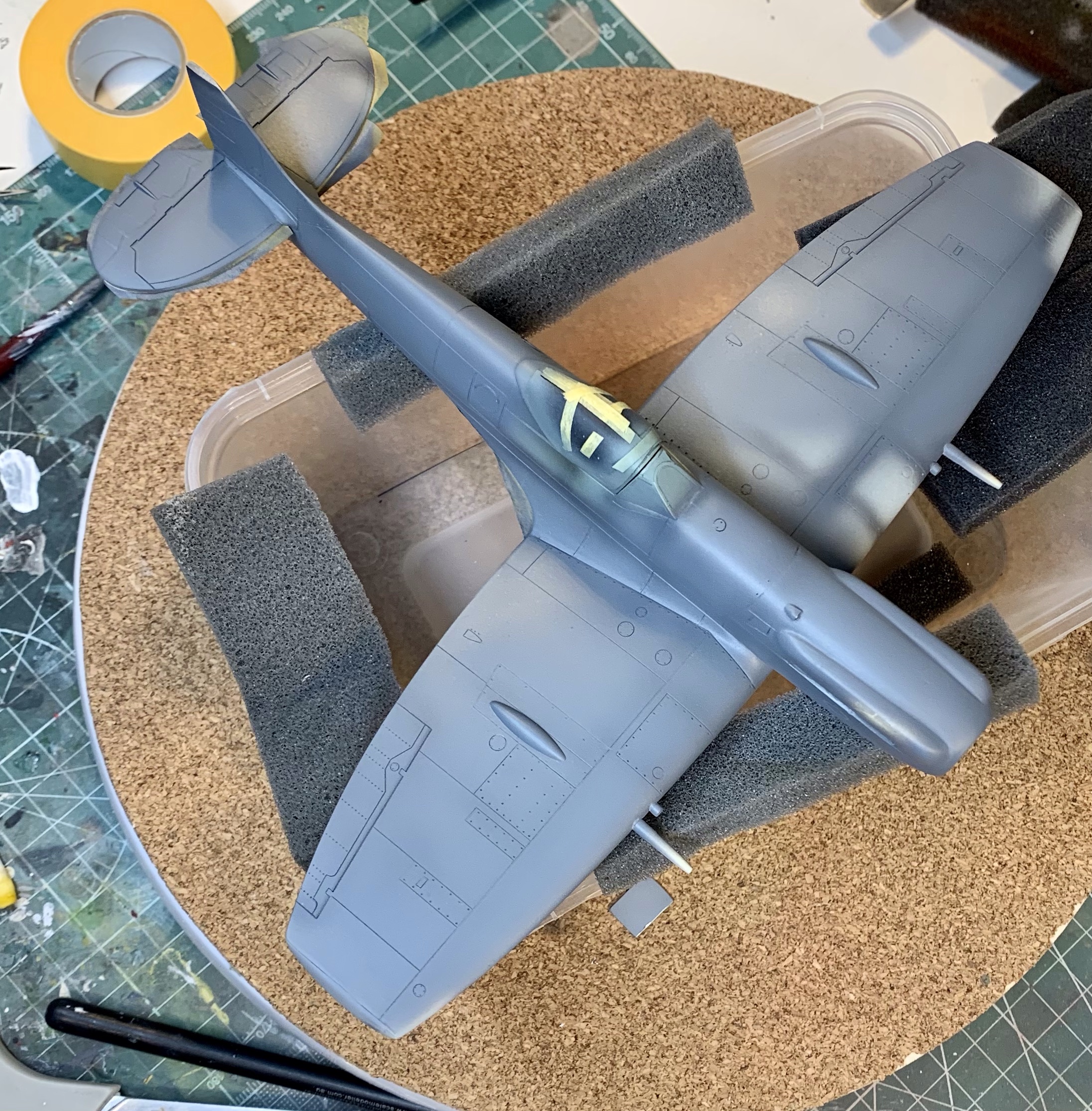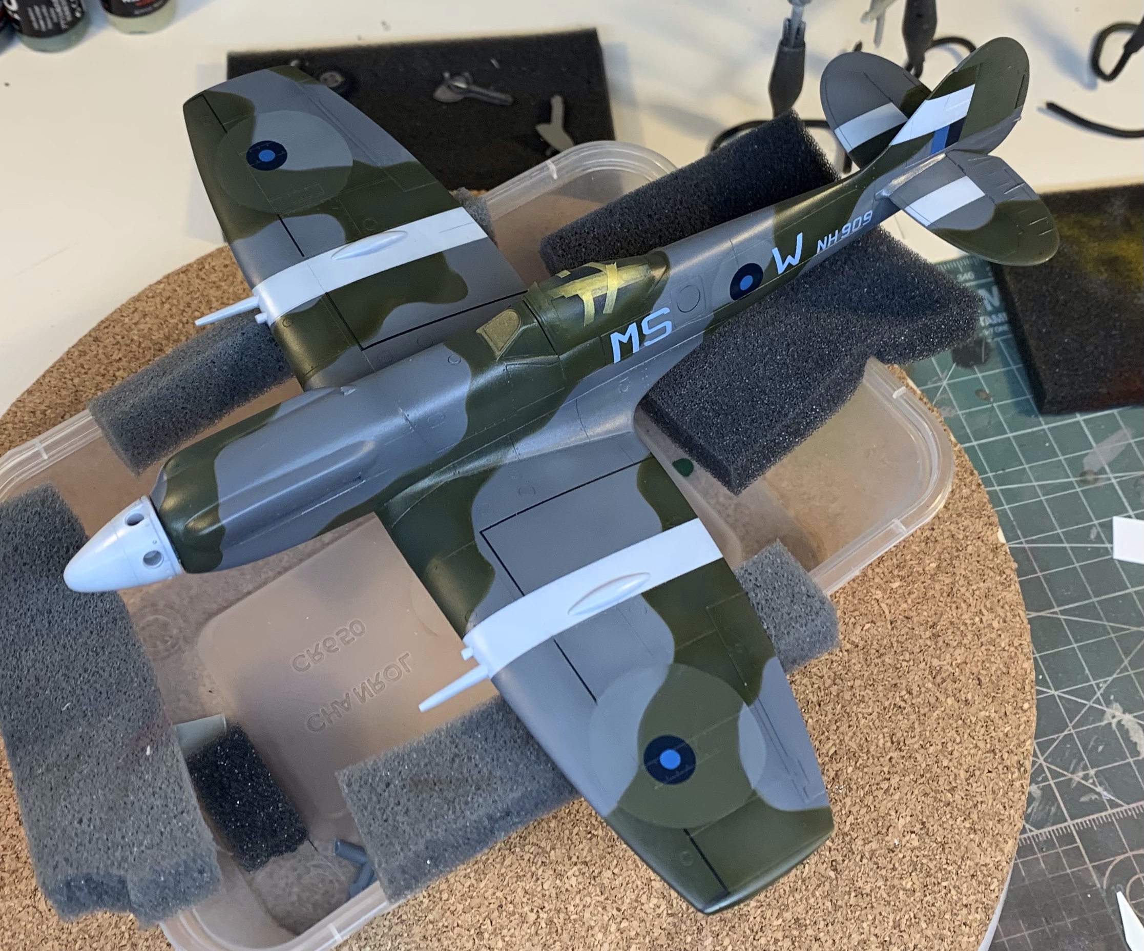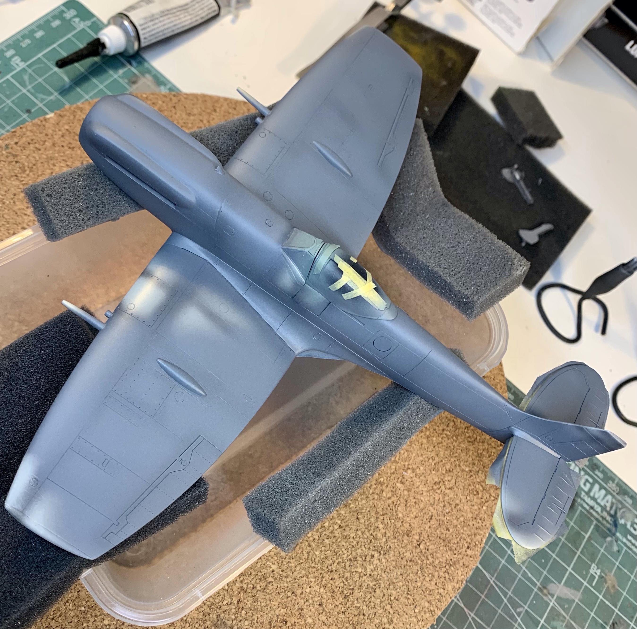 The purists will still – quite rightly – find fault in the overall shape of the Academy kit. It’s just a bit thick everywhere. But with the correction it’s not far off and in a way its faults further emphasis the brutish look of the Griffon Spitfire as compared to its Merlin predecessor. I’m quite happy with it.