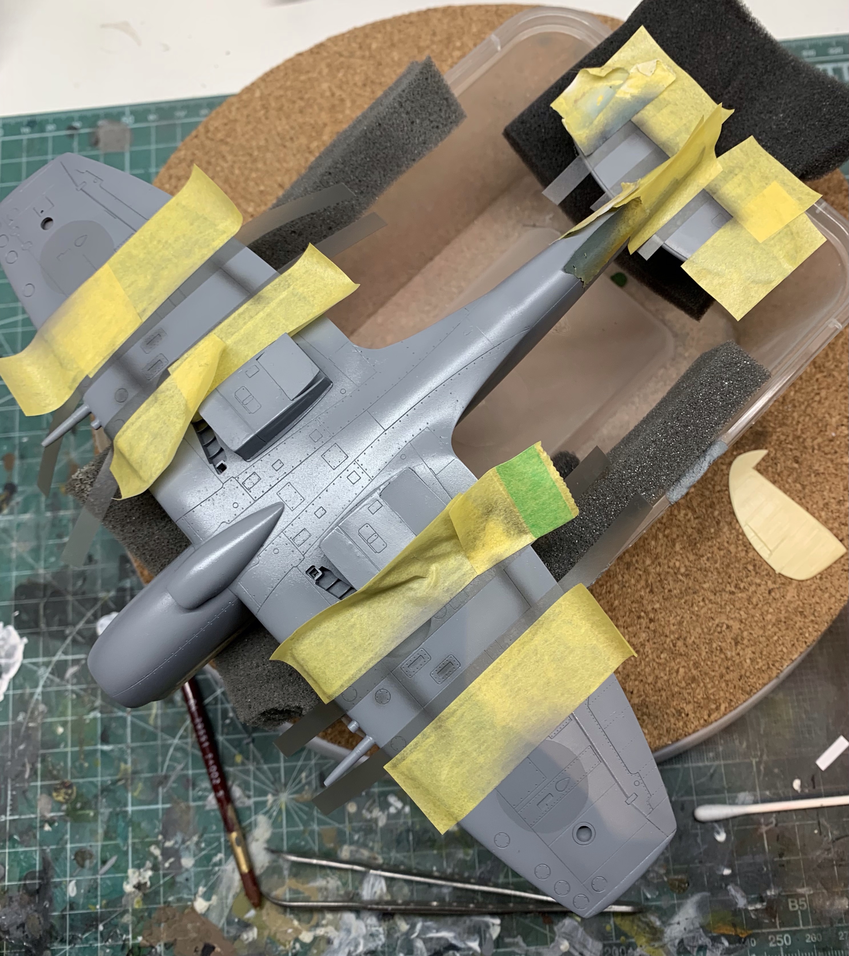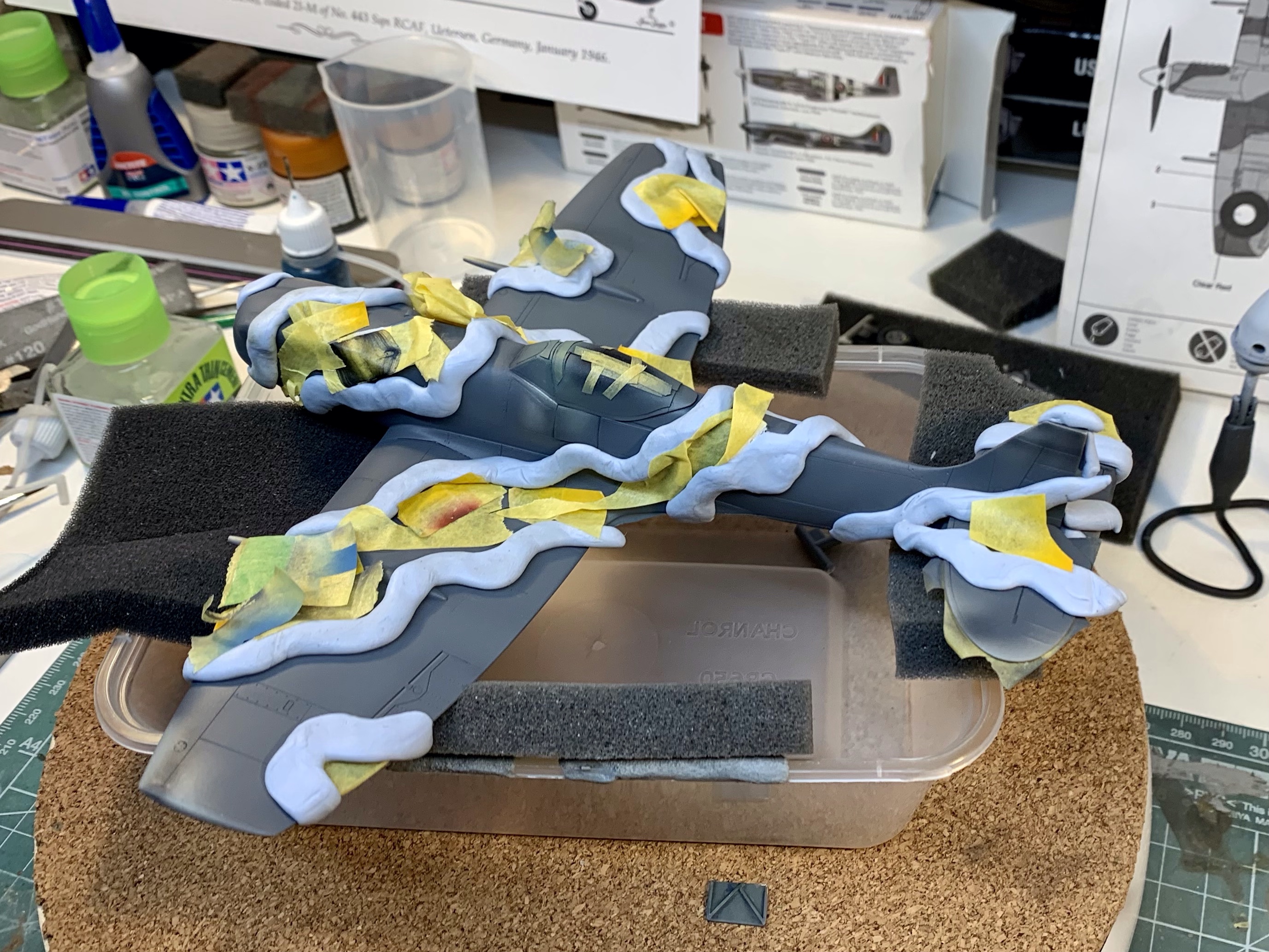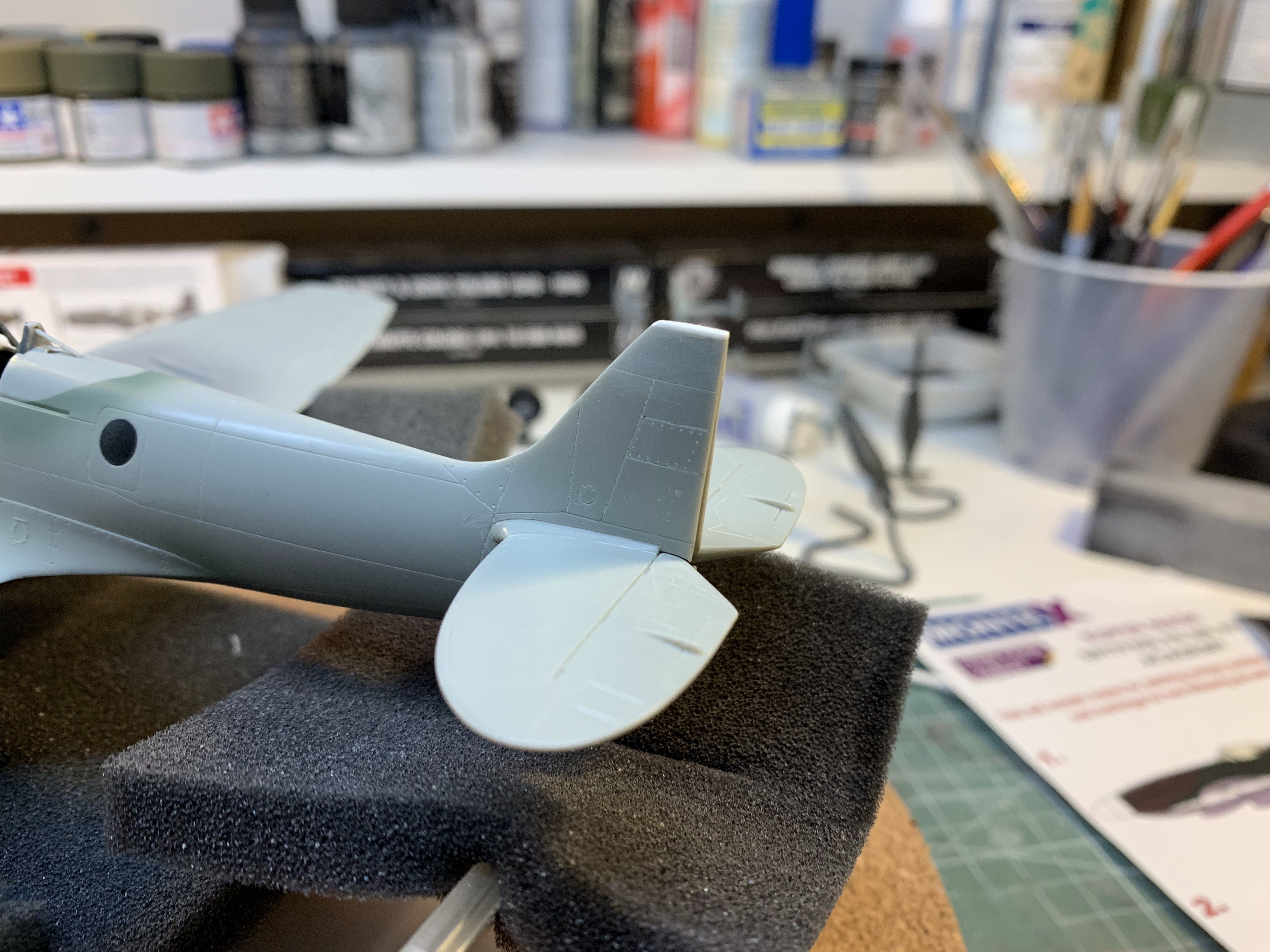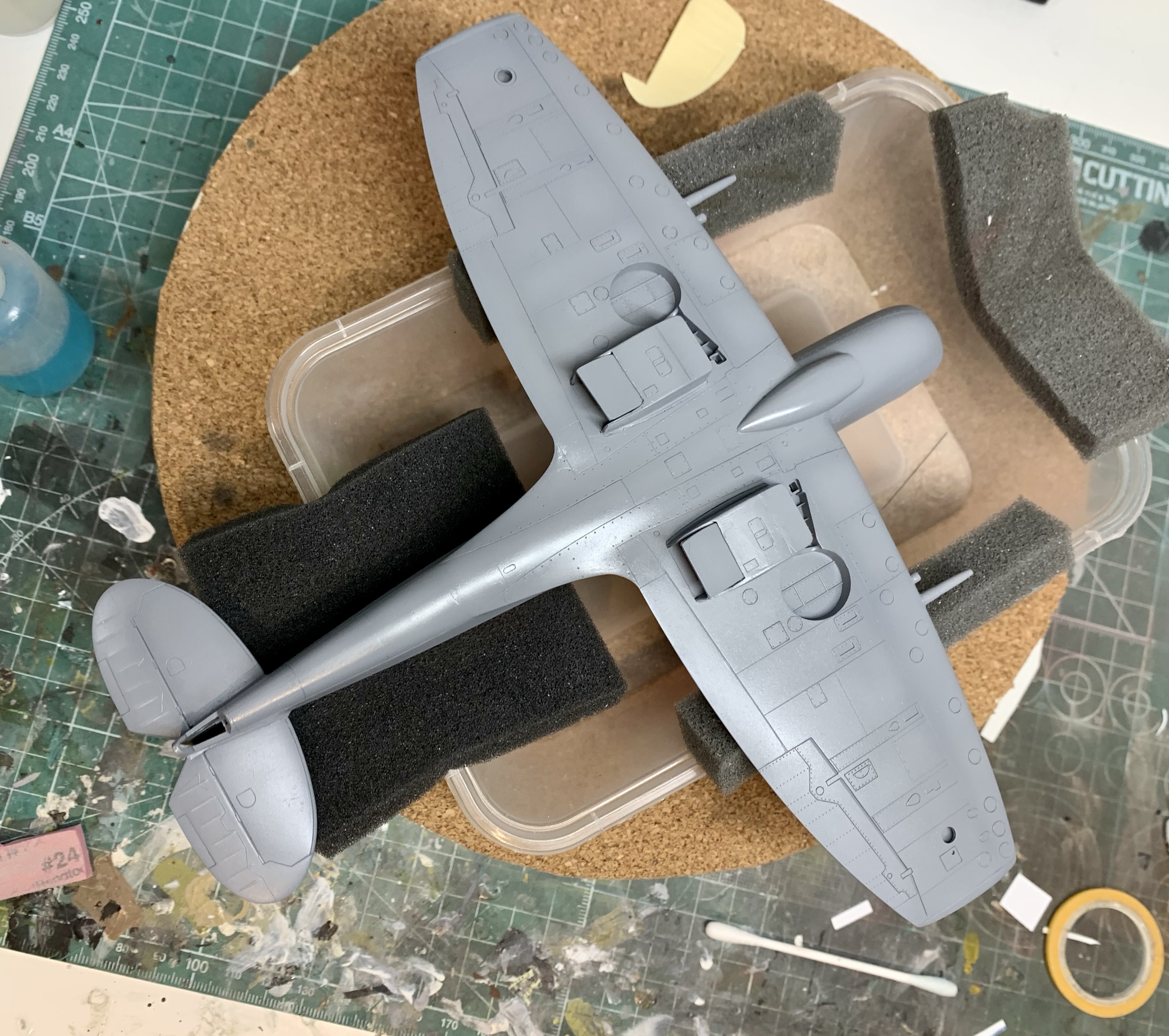 The purists will still – quite rightly – find fault in the overall shape of the Academy kit. It’s just a bit thick everywhere. But with the correction it’s not far off and in a way its faults further emphasis the brutish look of the Griffon Spitfire as compared to its Merlin predecessor. I’m quite happy with it.