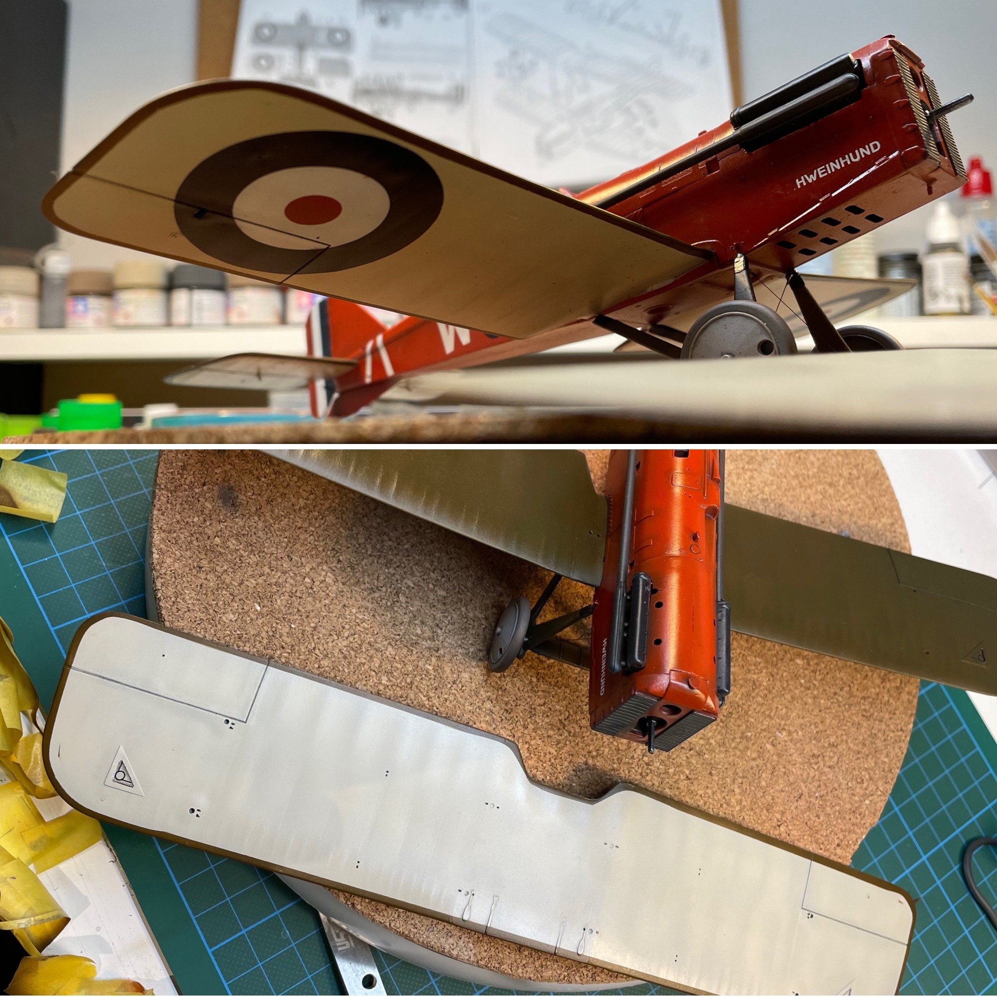 The colour scheme is a simple one; red fuselage, PC10 for the top sides of the wings (a green colour that elicites much debate as to its exact shade which can apparently run from a green-brown to olive green) and linen dope for the underside of the wings.