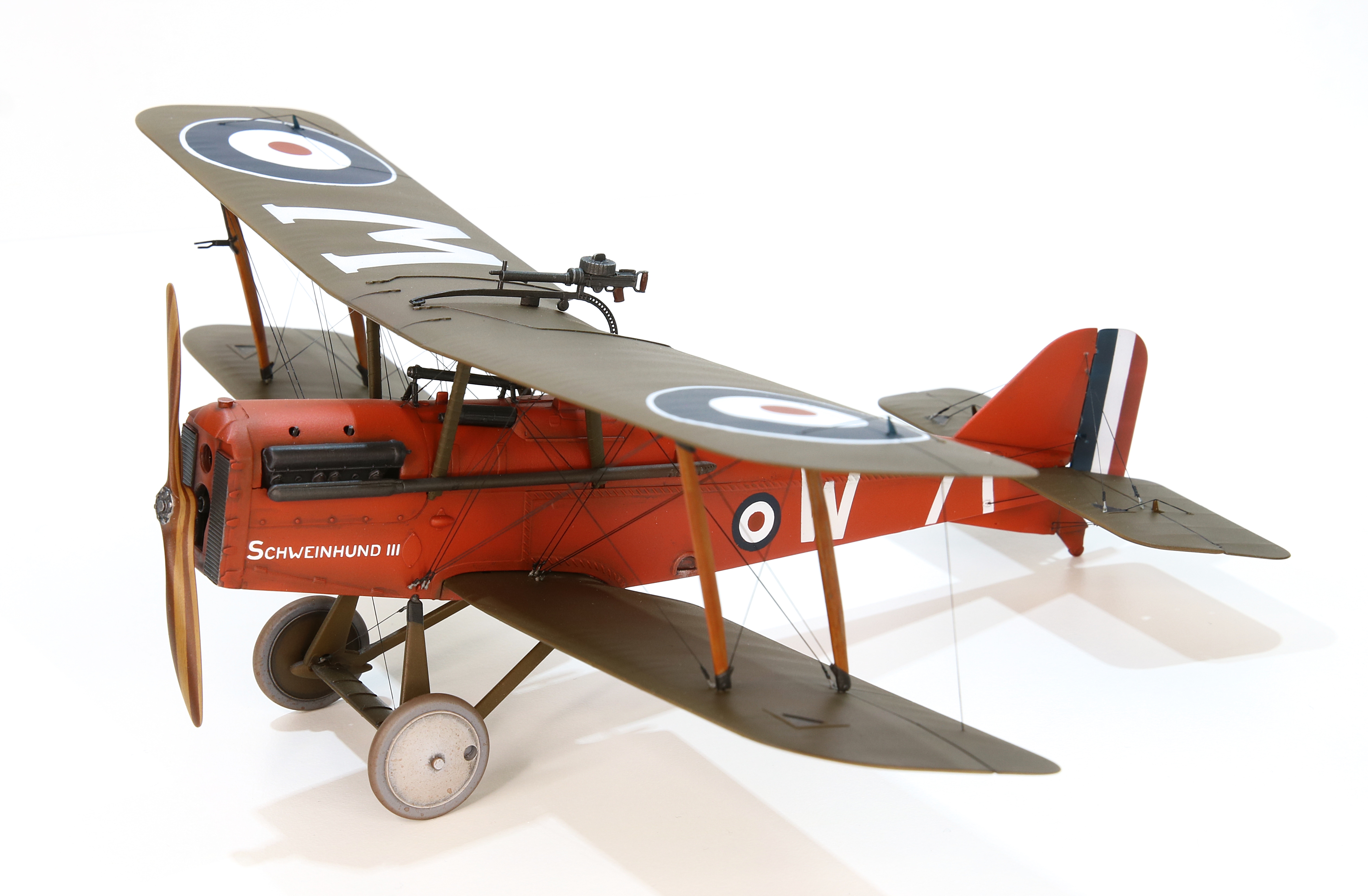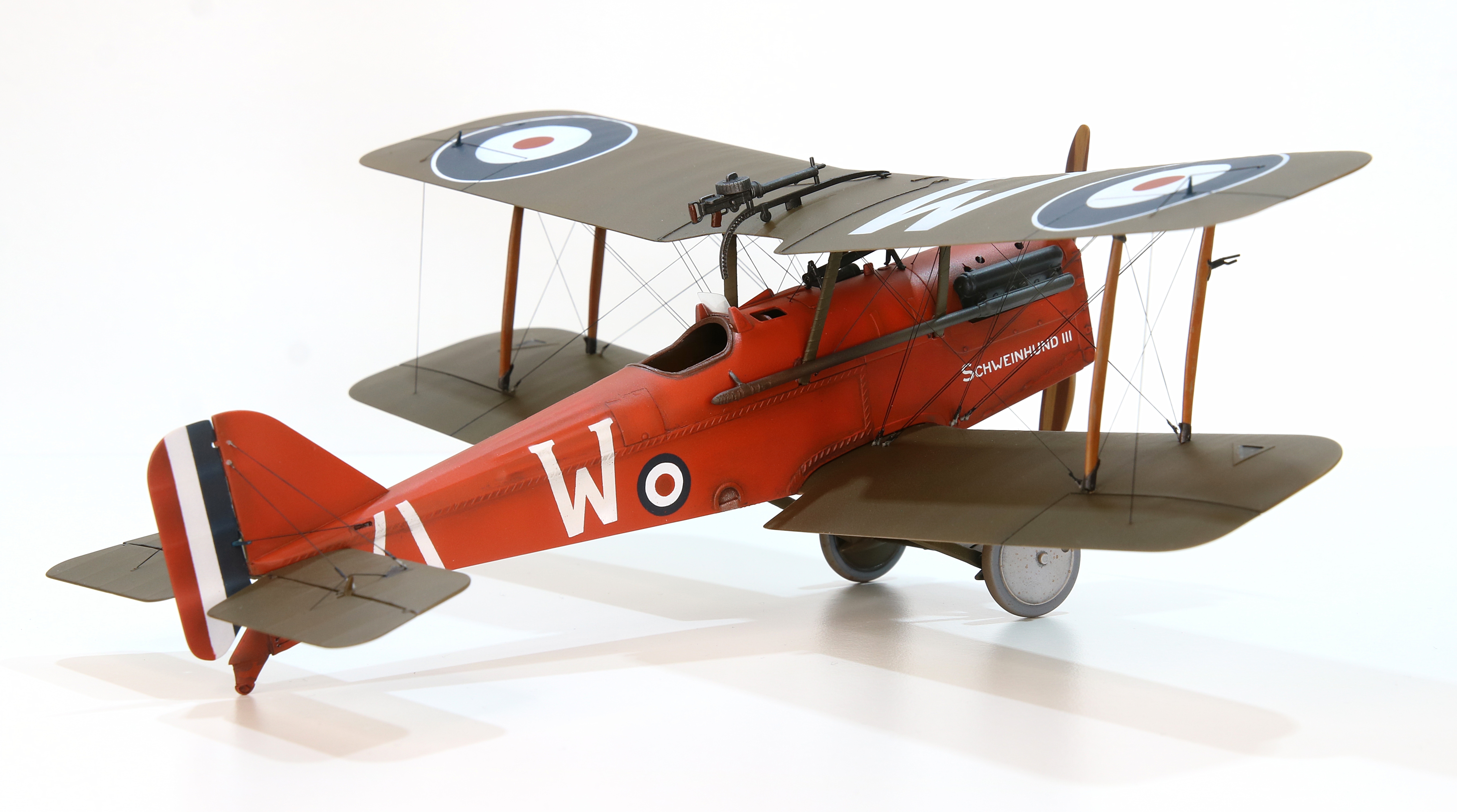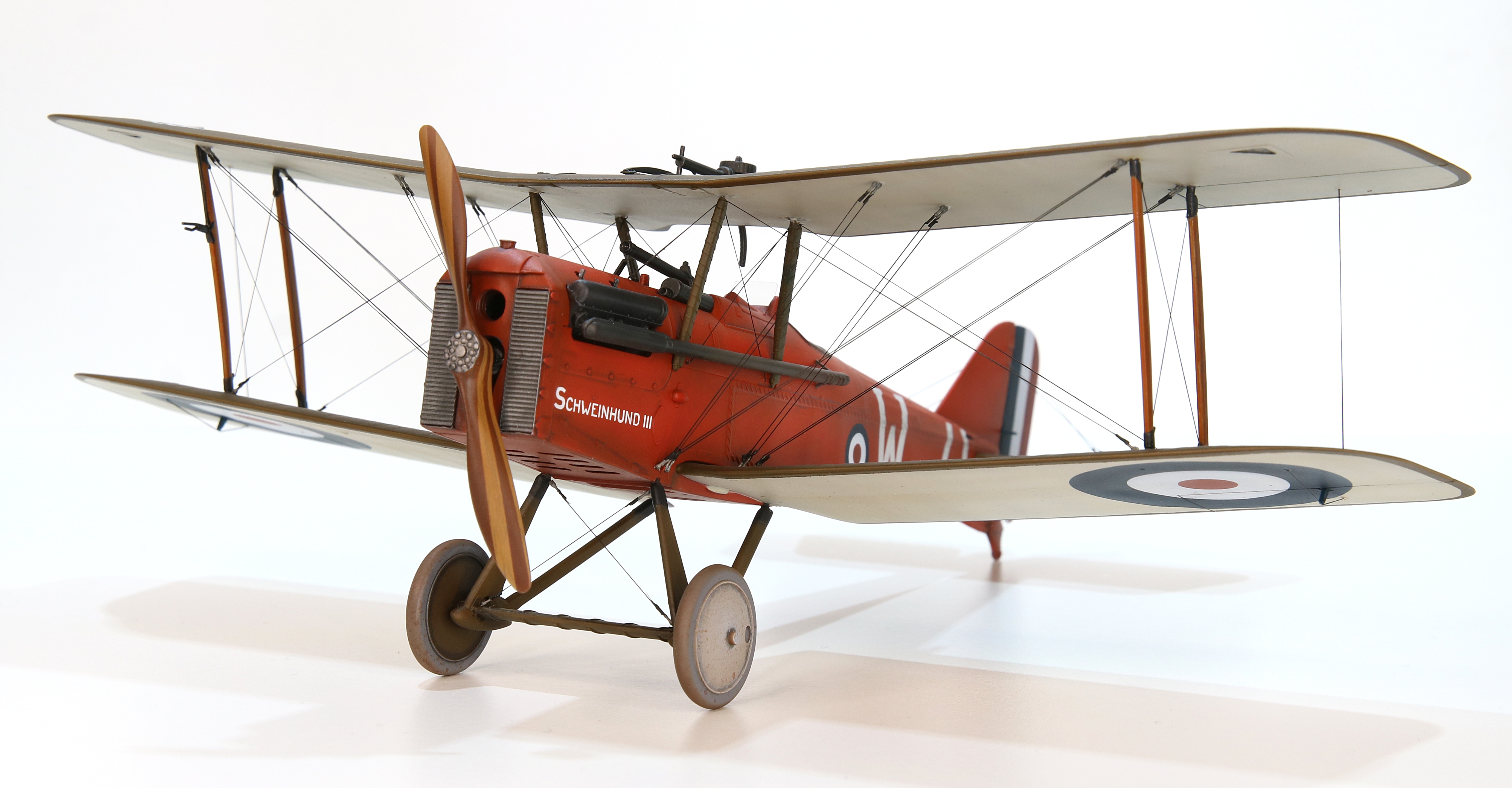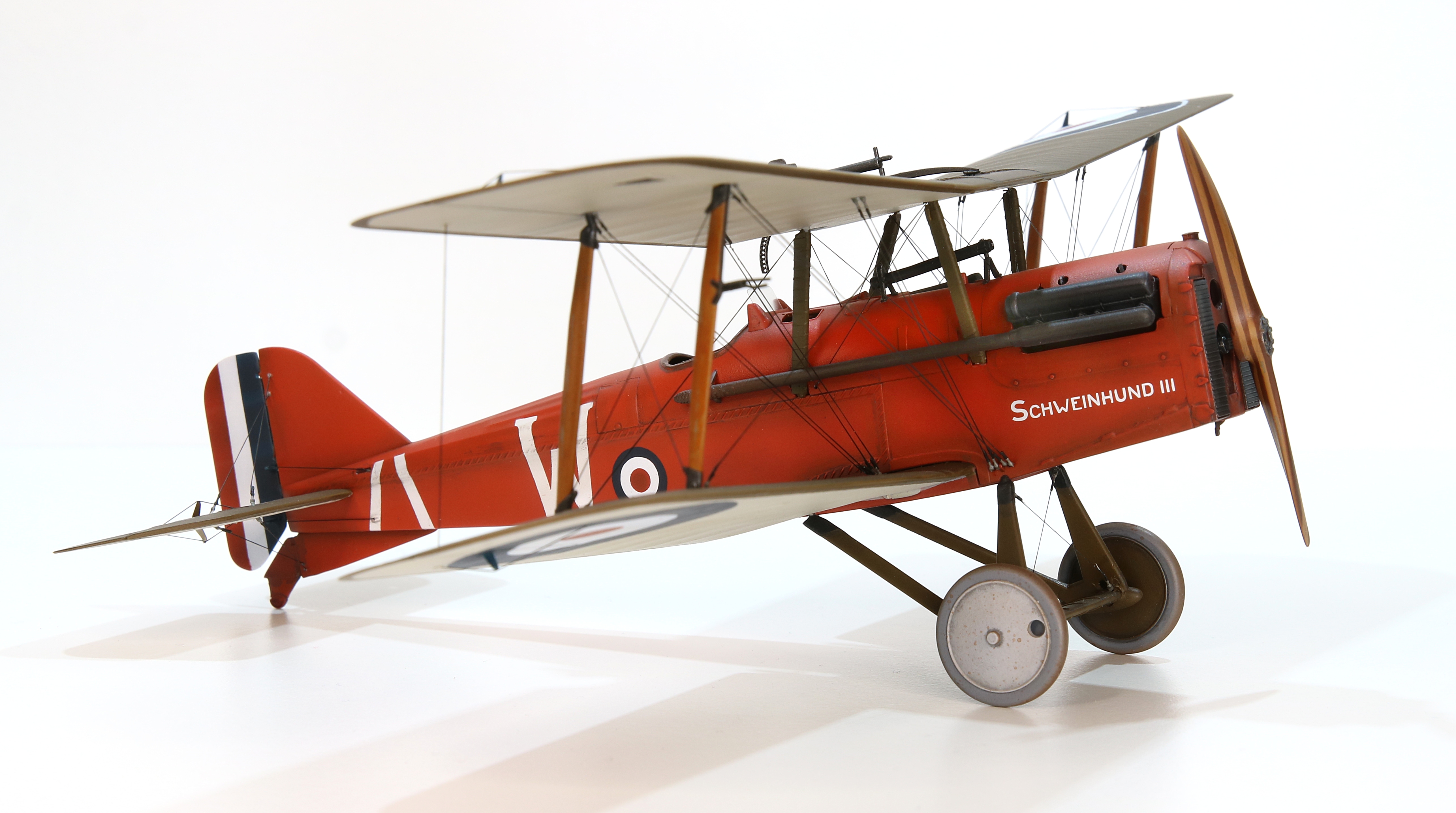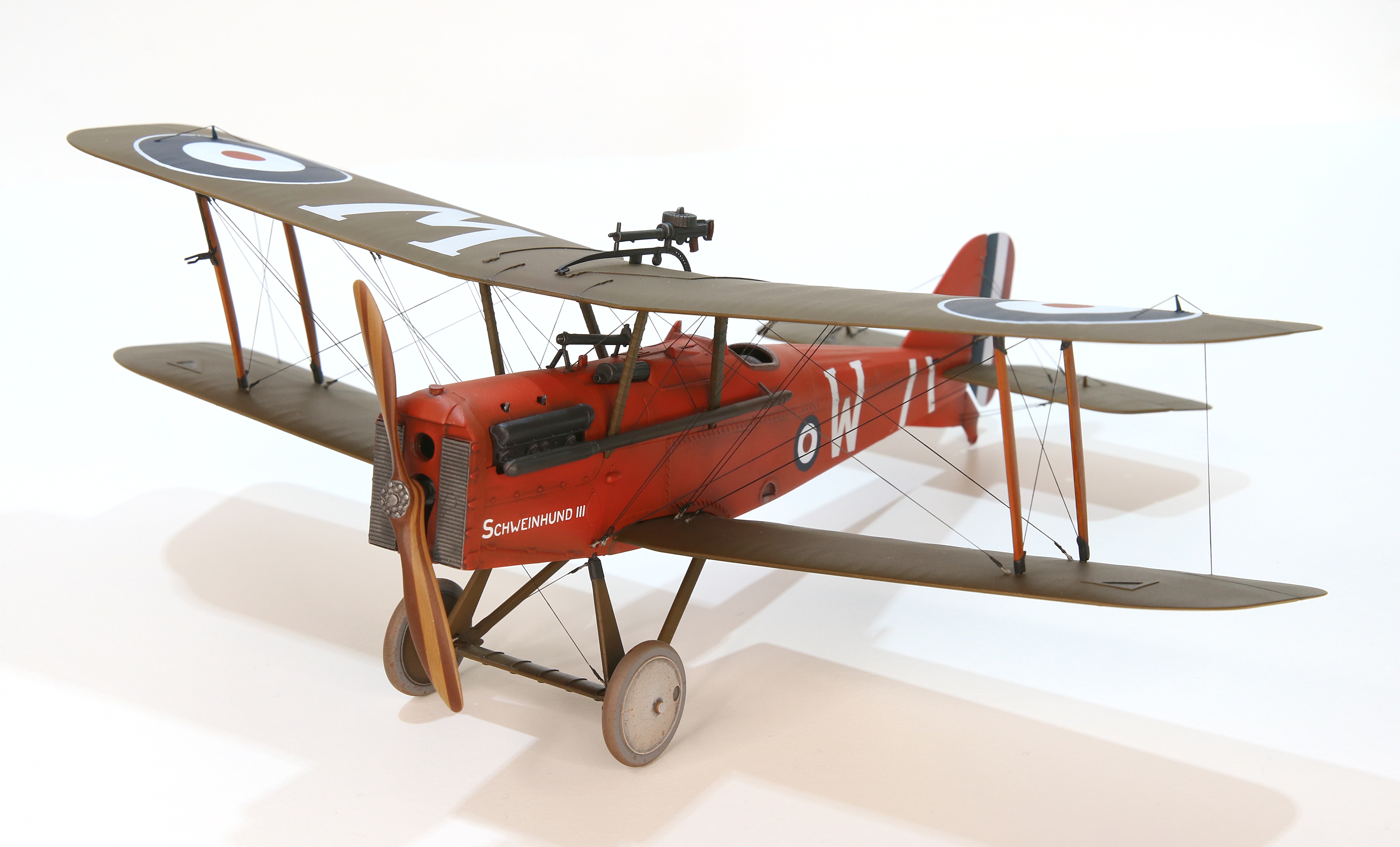 This particular biplane belonged to Lt. Duncan Grinnell-Milne of No. 16 Squadron RFC. He had an adventurous war which included scoring several kills before he was forced down behind the German lines and captured. He was listed as “missing” on 2 December 1915 eventually being reported a prisoner of war in early January 1916. Two years later he escaped, made his way back to England and saw action again in the latter half of 1918. “Scheinhund” was DGM’s SEa5 at the end of the war. According to his autobiography, there were three “Scheinhund” and I chose to model the third which was known to be painted red, though whether the “III” was present is unlikely – I chose some artistic license there.
