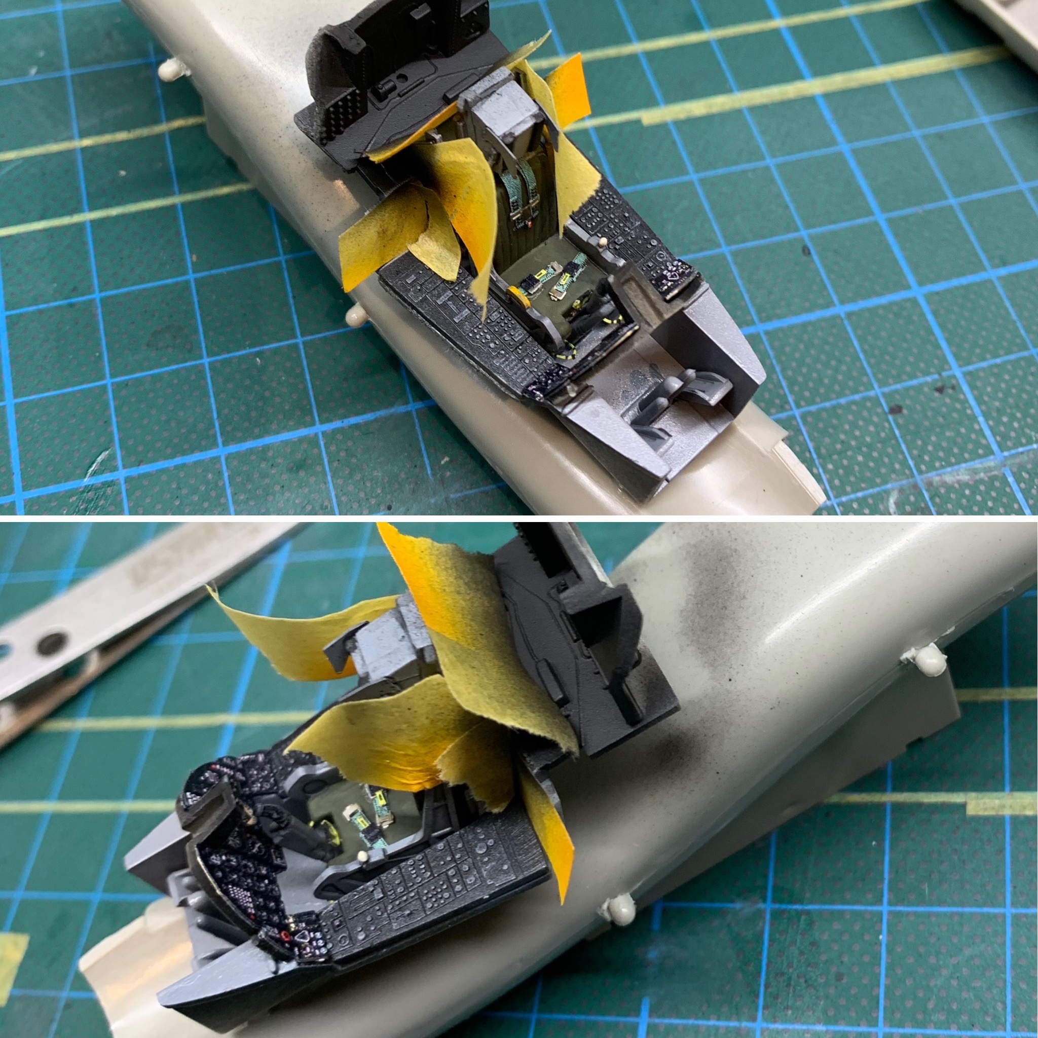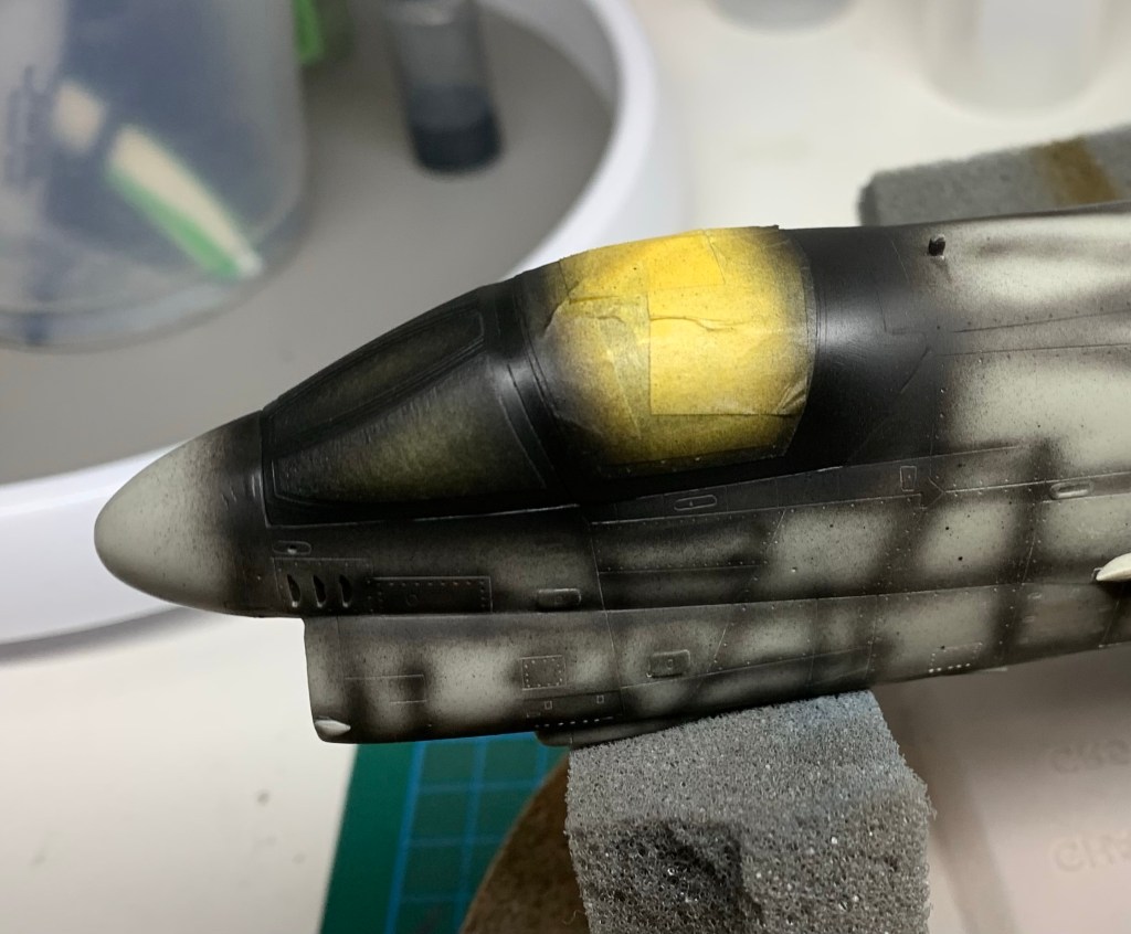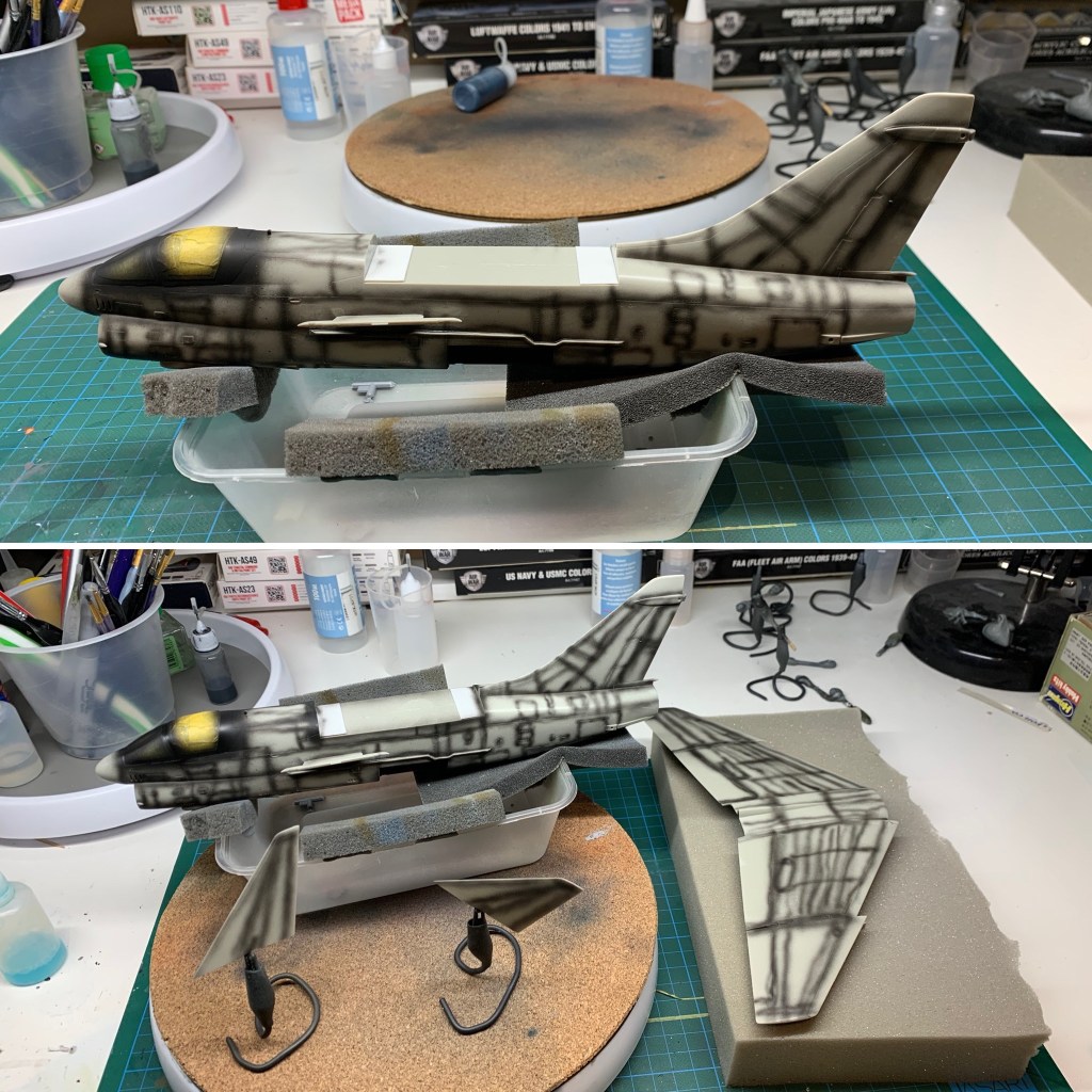 The base application was a little dark but that was by design. This allowed me to apply lighter and lighter misted coats to build the variation around the airframe in a way that replicated what I could see in the photos. It took a while but I was pretty happy with where it ended up.