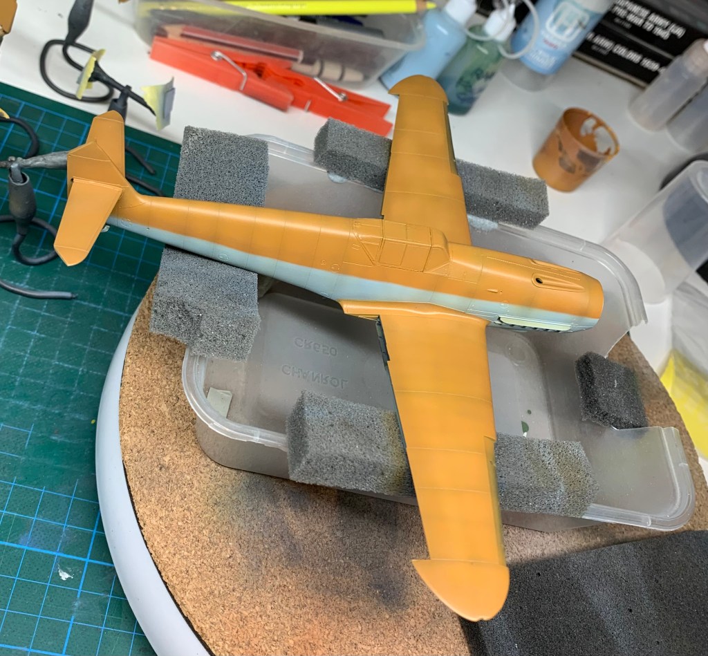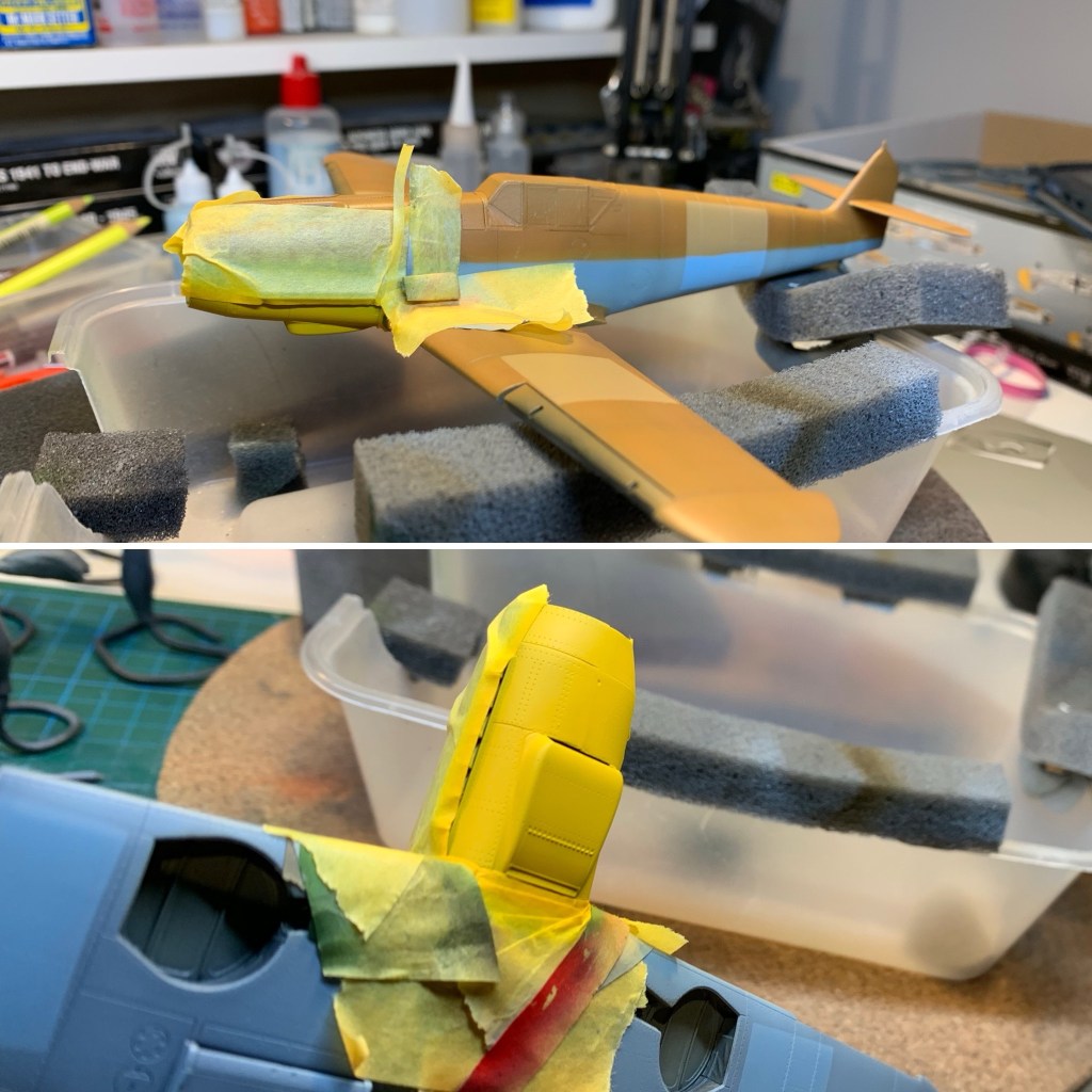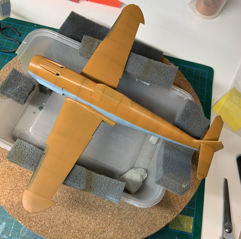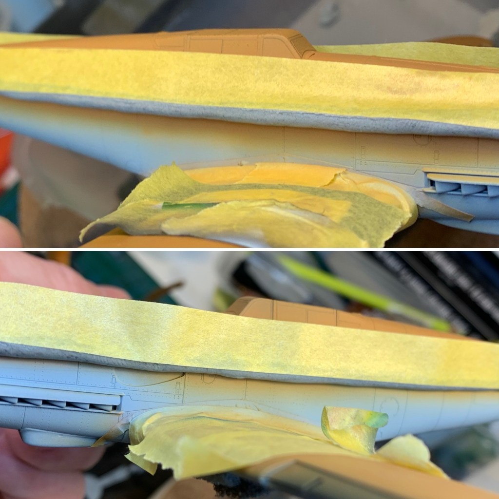 The basic paint scheme is quite clear; RLM 79 or RLM78 at a mid-fuselage demarcation with a tight transition. The transition still looked soft to me, but very tight. Otherwise the initial paint phase looked to be simple.