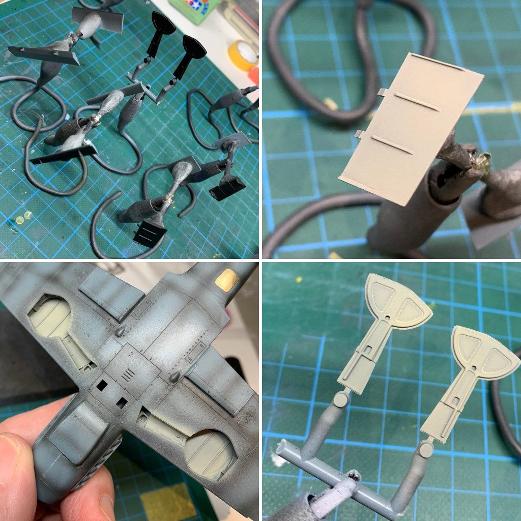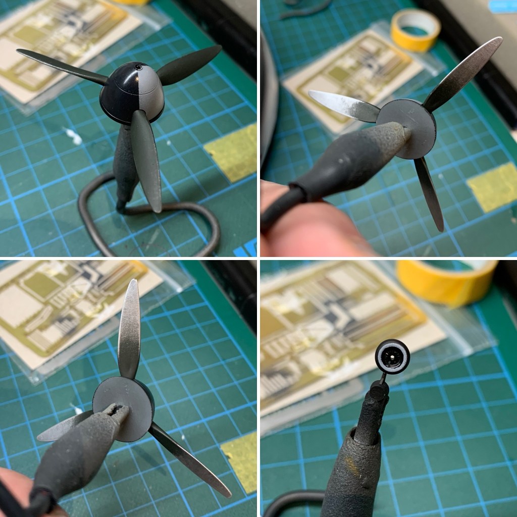 Amazingly, I likely spent more time deliberating on how to paint the spinner than any other part of the model. Clearly there was a lighter-painted segment but what colour? After deliberating far too long I eventually settled on black with a very dirty white segment but even now I’m not convinced. I did weather the blades heavily; the photos clearly show that almost all of the paint was worn away from the rear while the front was more or less untouched.