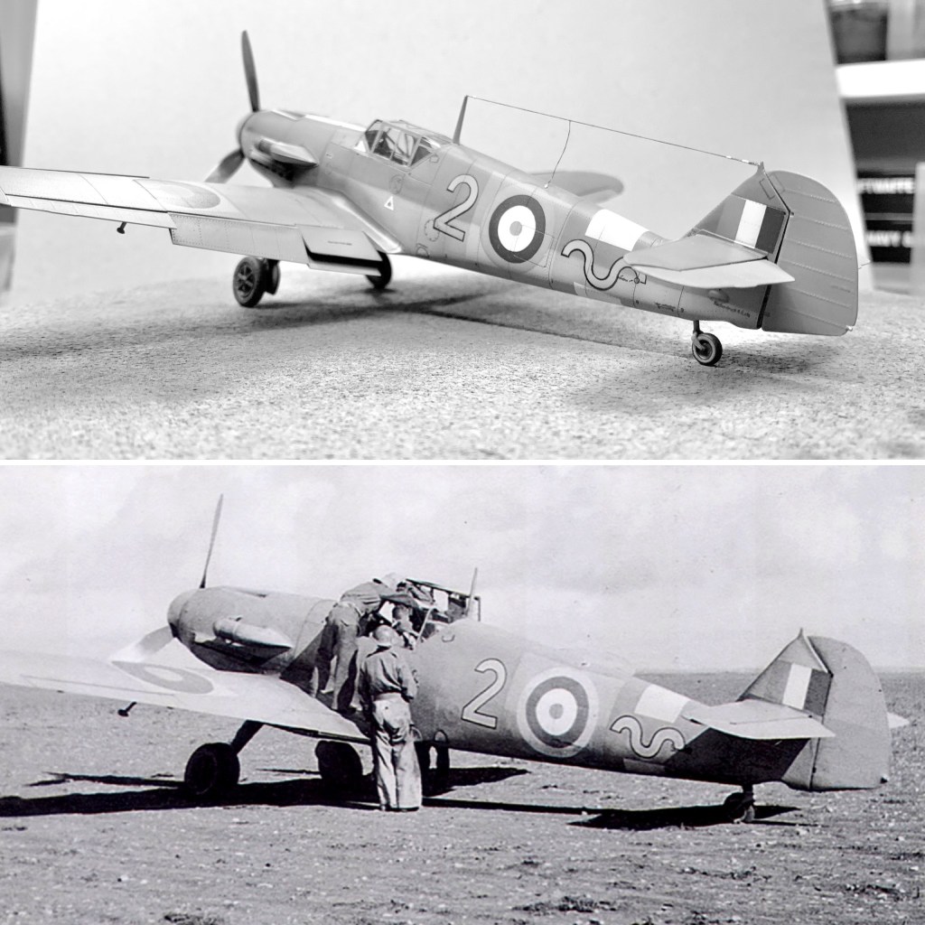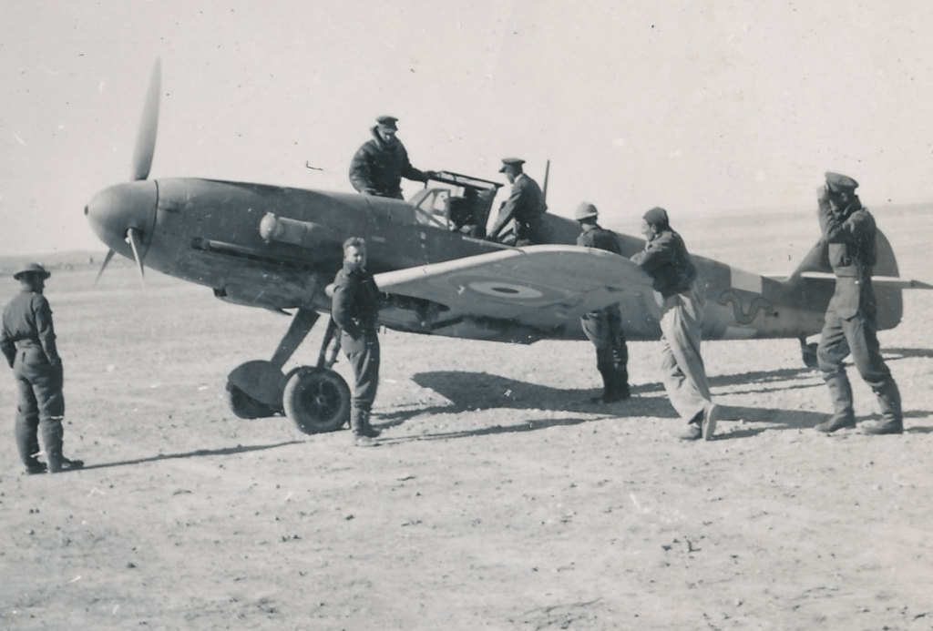 Maj Osler of Number 1 Squadron was the first SAAF pilot to fly a captured Bf-109F, doing so in celebration of his DFC which had been awarded to him on 7 January 1942. “Yellow 2” had been made serviceable to fly by the Squadron’s ground crew. After the flight his first comment was “Give me a Hurricane any day”. He found the view from the Bf109 poor, and flew it to Heliopolis on the first stage of its journey to England. Bennie, therefore became the first Commonwealth pilot in the desert to fly the Bf109, and 1 Squadron was pleased at this distinction.