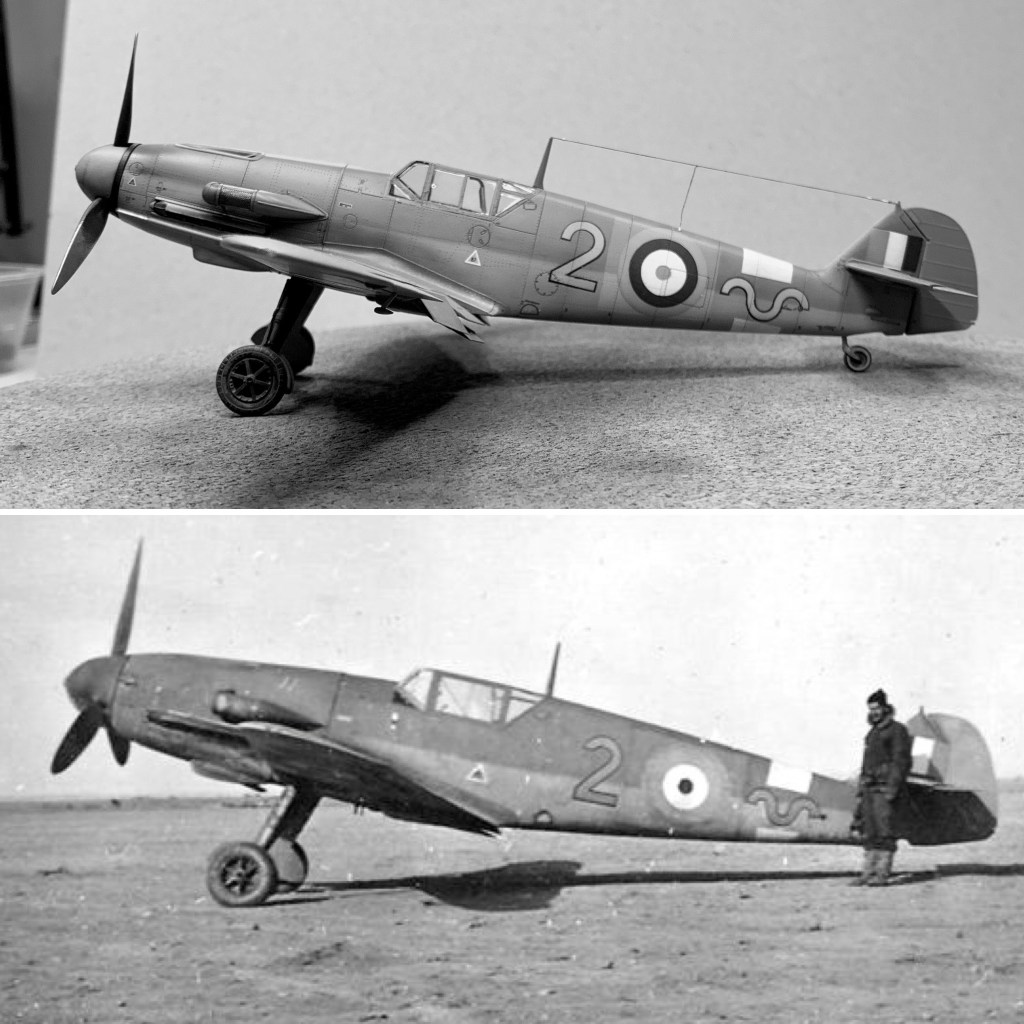 The airframe went through an evolution in its captured markings; by the time the photo above was taken some effort had been made to blend them in to the original Luftwaffe scheme and it is in this style that I planned to build me version of “Yellow 2”.