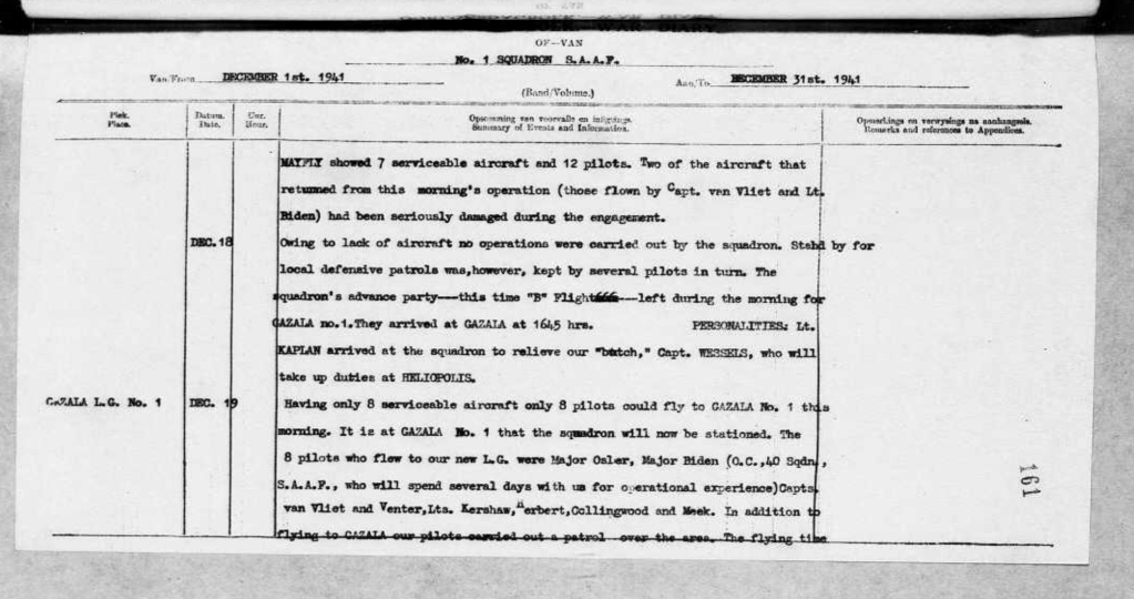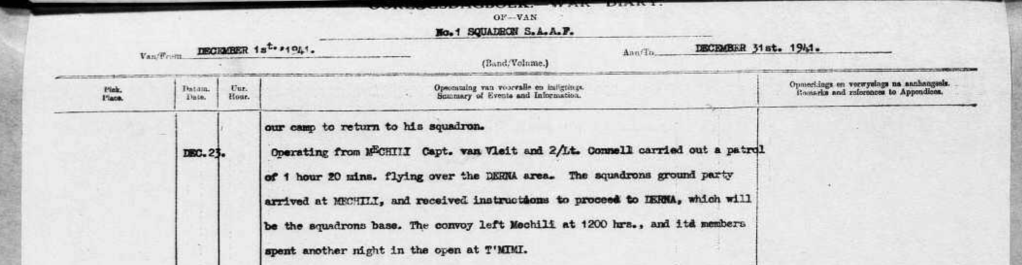 Dec 23 – Squadron’s ground party arrives at MECHILI and receives orders to proceed to DERNA