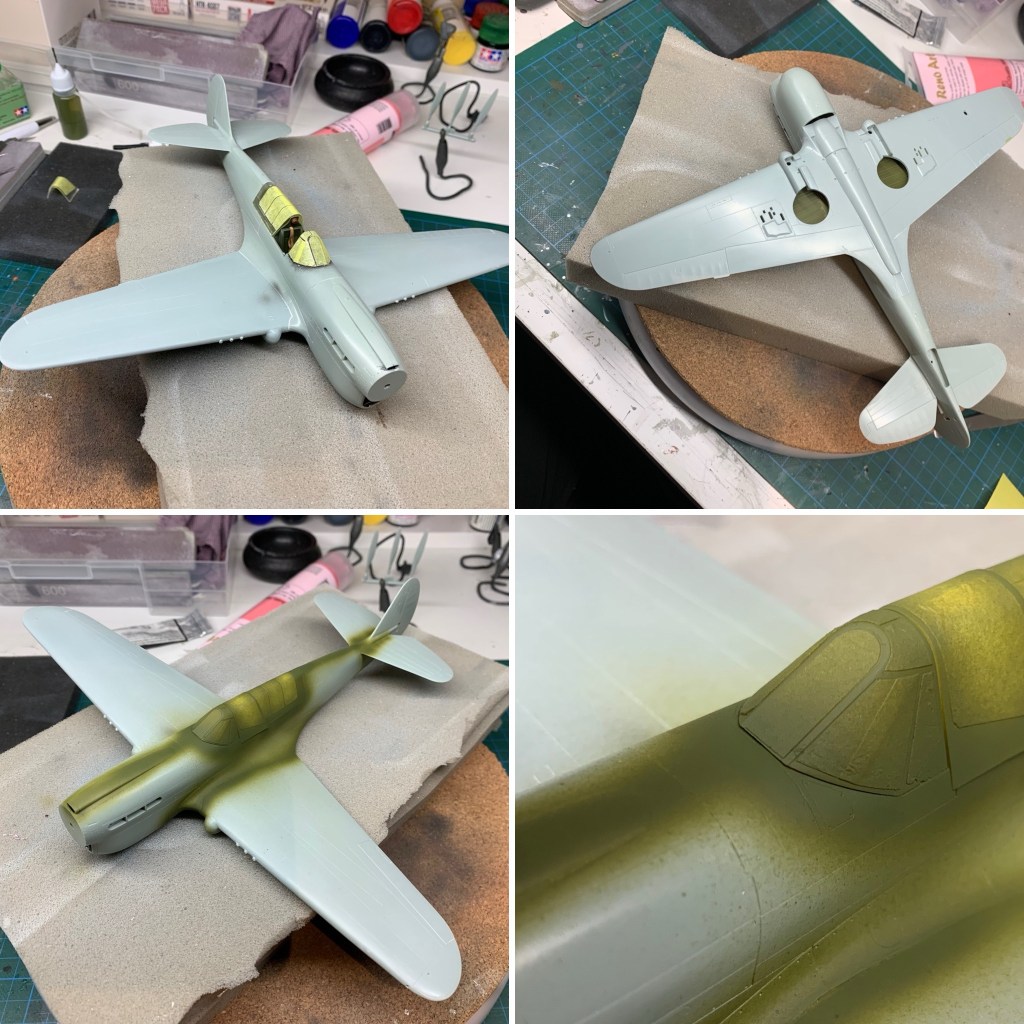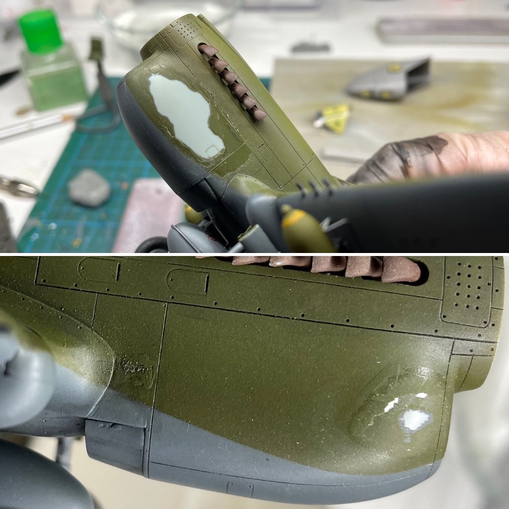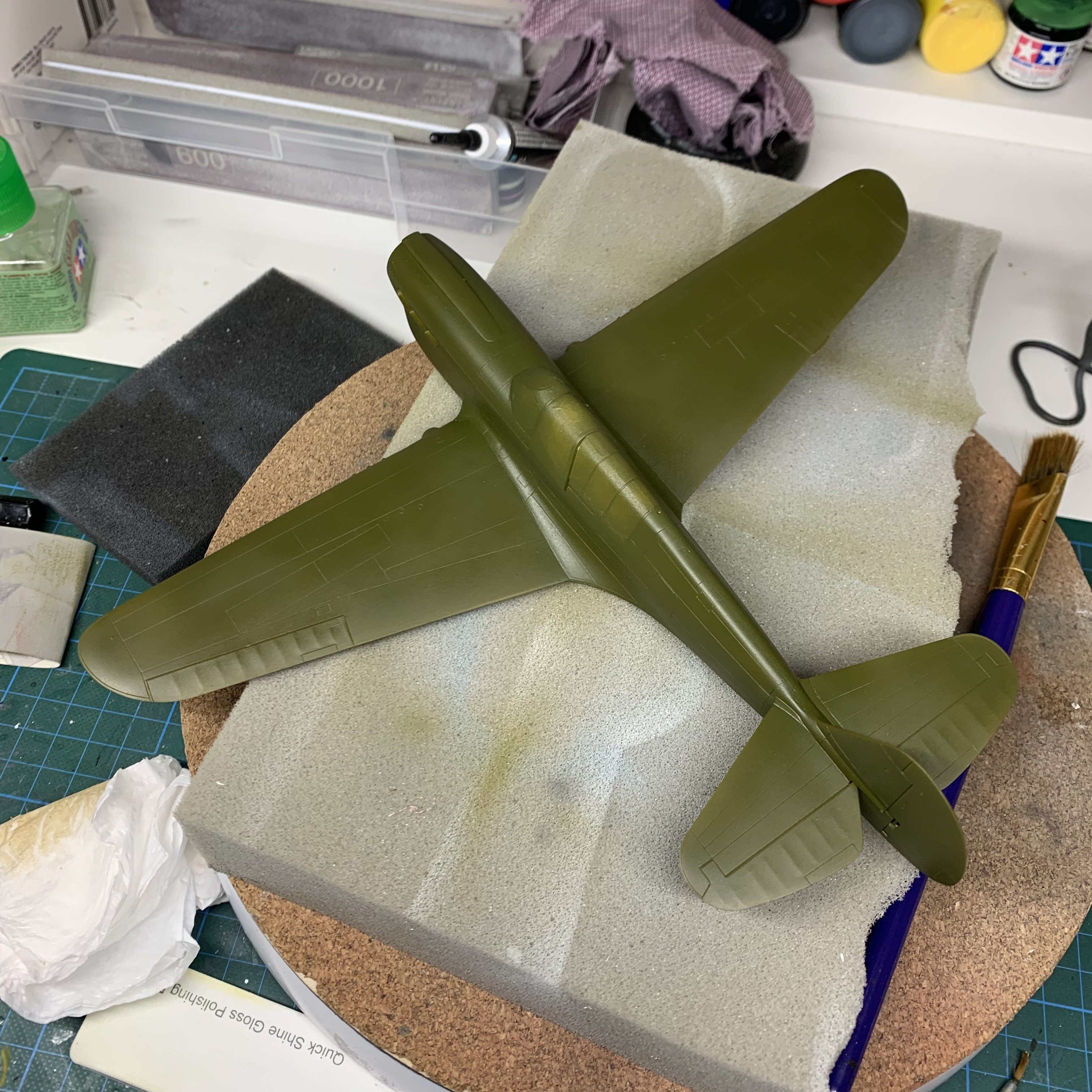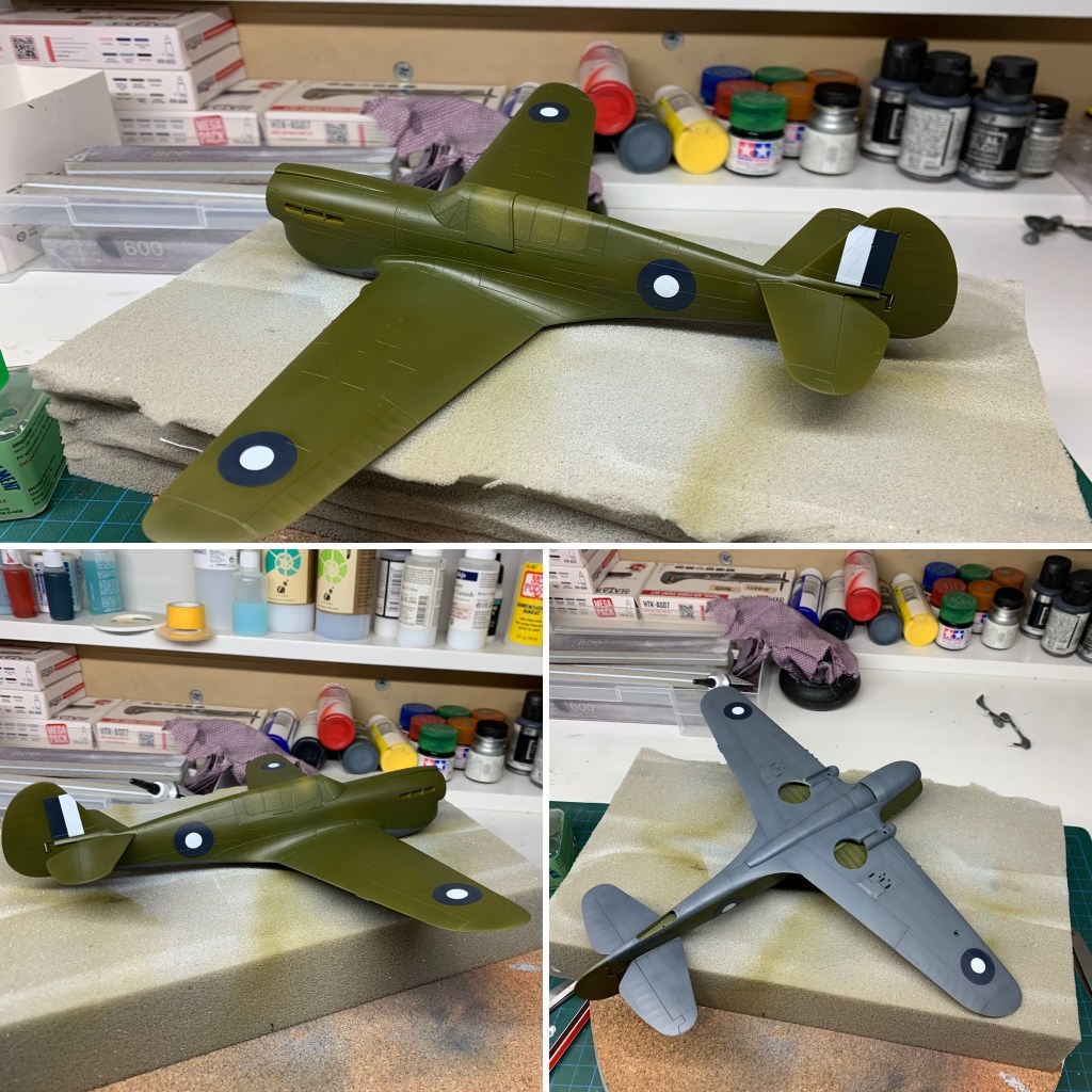 The scheme for No. 80 Squadron’s P-40’s was indeed simple, green over grey. These were US-painted airframes so the colours were Olive Green over Neutral Grey. Monochromatic schemes can be challenging to breath life into but these particular aircraft operated in relatively harsh conditions so I had a little more leeway within which to work.