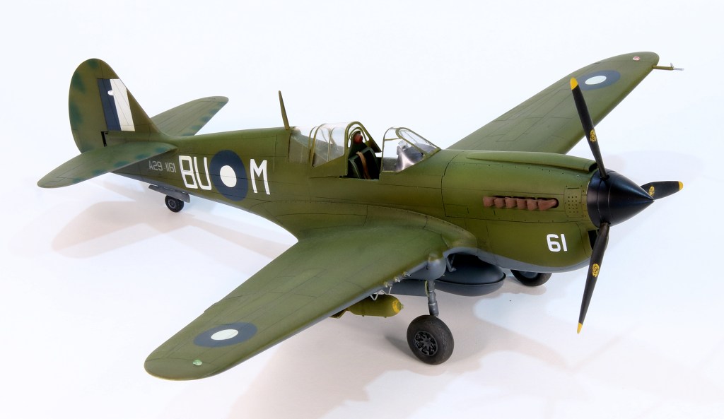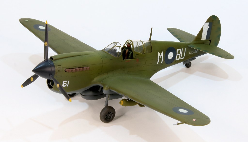 The undercarriage, bomb load and other bits and pieces were applied without complication. I made the bomb pylons from wire as a simplified representation of the RAAF bomb carriers. They’re not very accurate but capture the look if not the detail.