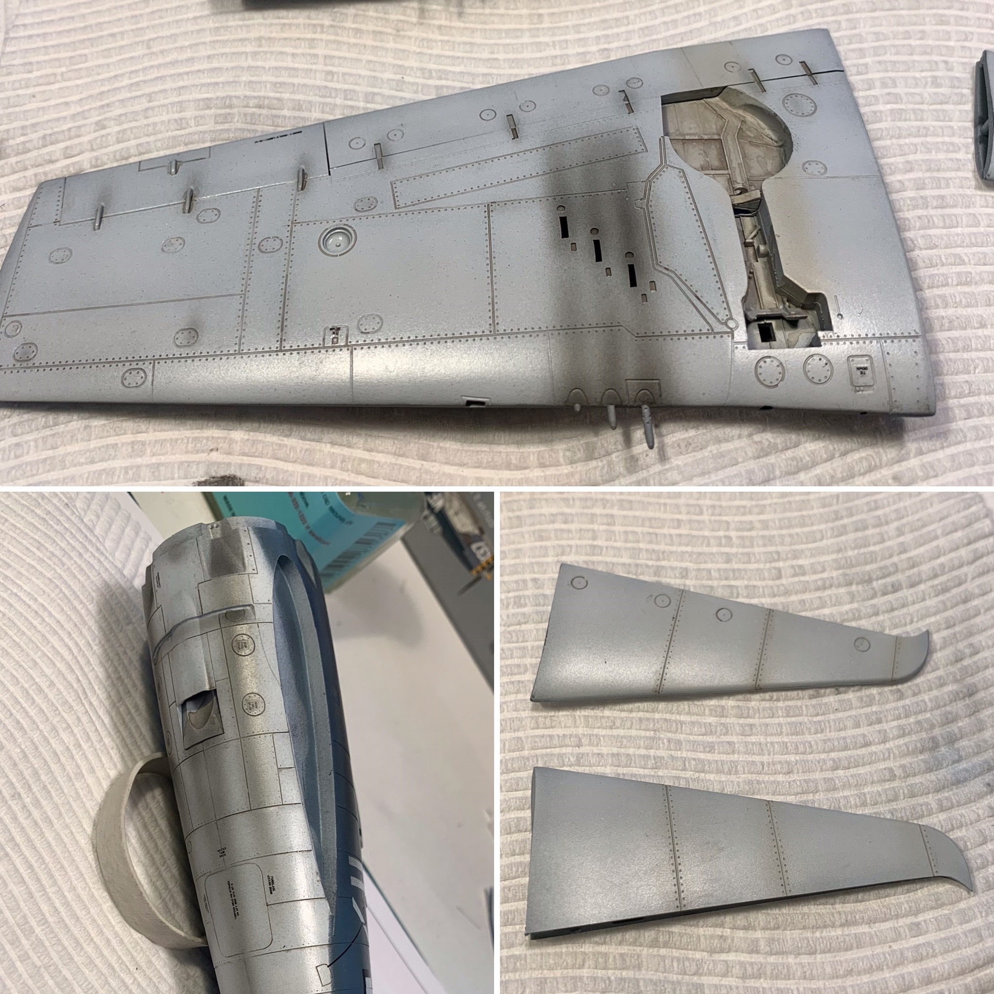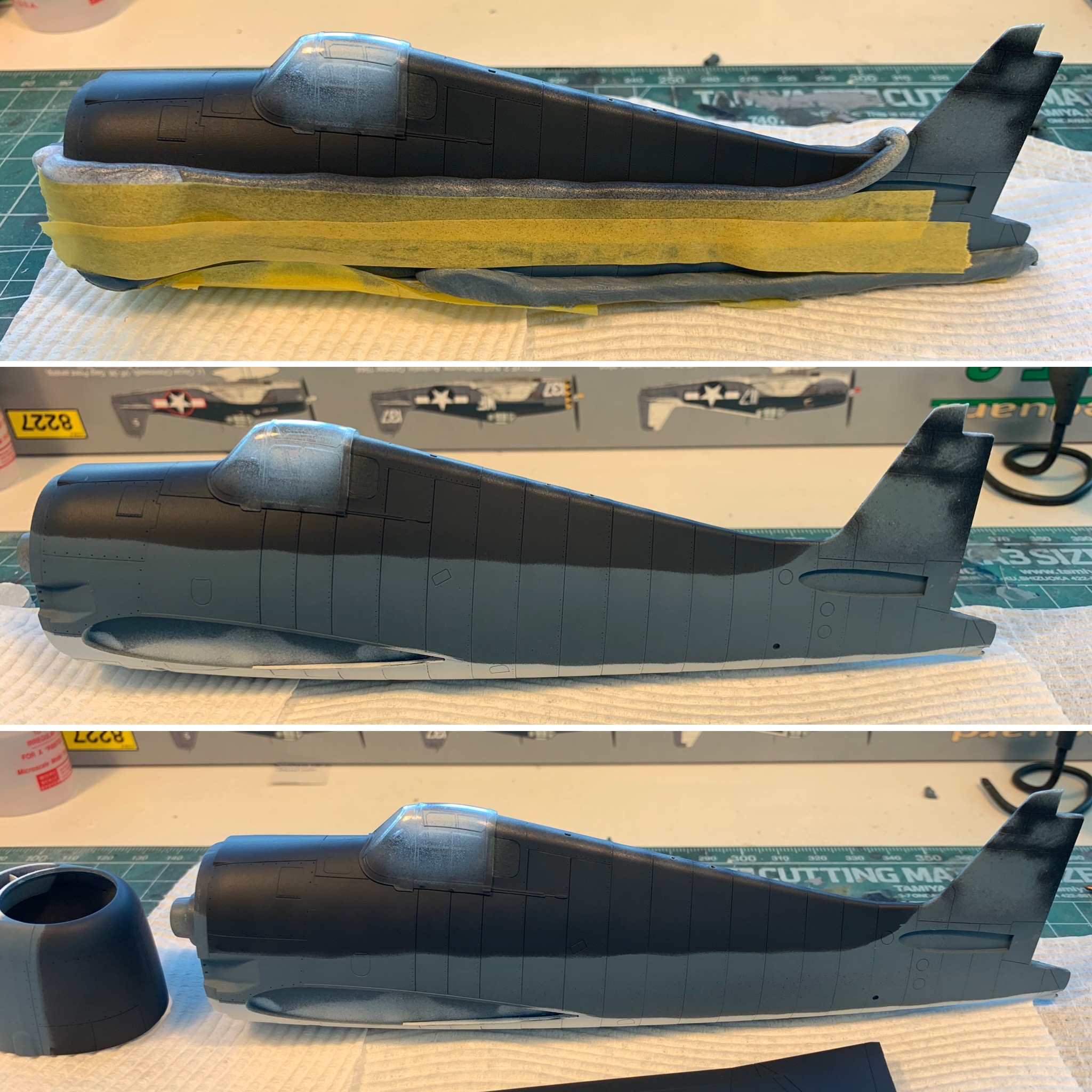 The image below shows the stages I went through on the fuselage. I used Tamiya White and Vallejo Model Air for the Intermediate Blue and the NSSB uppers.