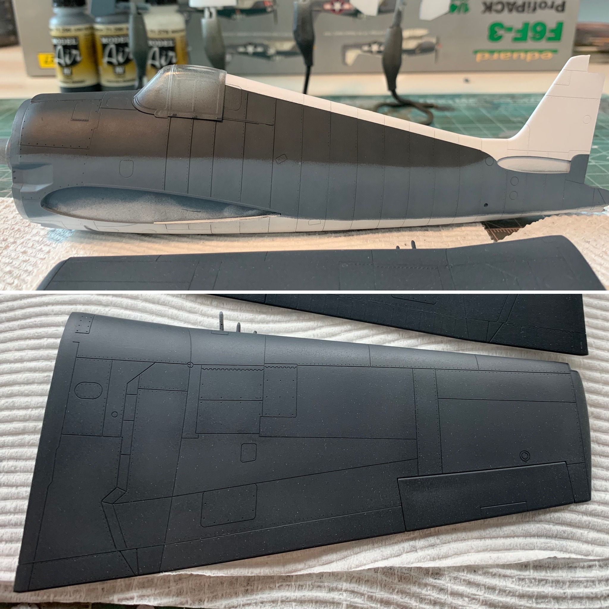 Painting began with some preshading; this was mostly for the benefit of the white undersides as the Non Specular Sea Blue would be too dark for it to be of any real benefit.