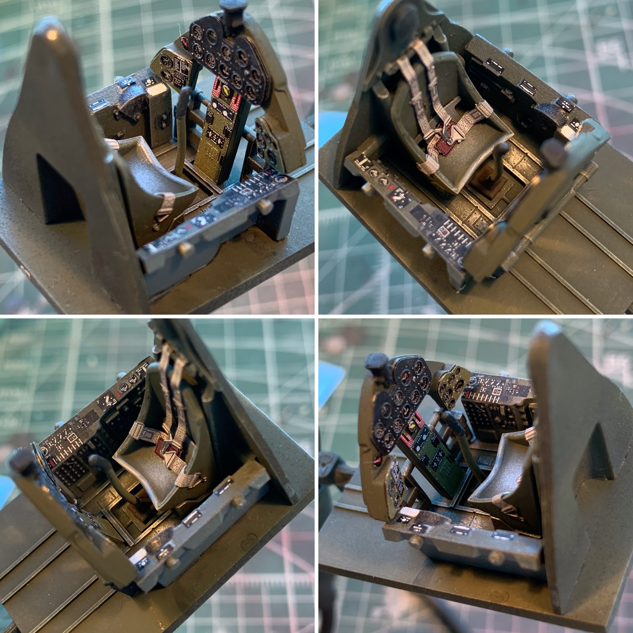 I began with the cockpit, as usual, and as usual I spent more time on it than I intended. And, as usual, I arrived at a result that was better than I’d hoped for. That was mostly down to the kit though, the PE is very nicely done and all I really did was paint the plastic parts and glue on the PE.