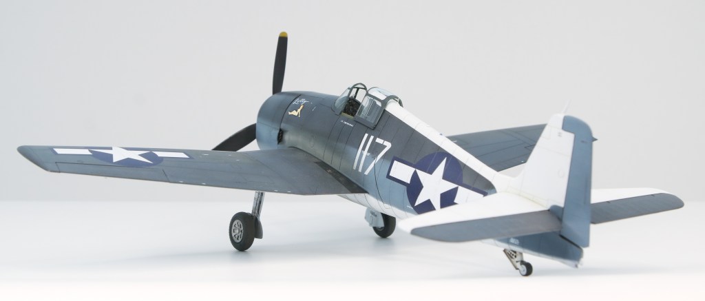 It was inevitable that I would build a model of Ens. Bradley’s Hellcat and once again I used the Eduard kit. The build was much the same as the first one, there is no need to repeat the posting on that. This one differed from the first one above only in that all of the markings are painted, and it is better. The weathering in particular captures the original much more closely.
