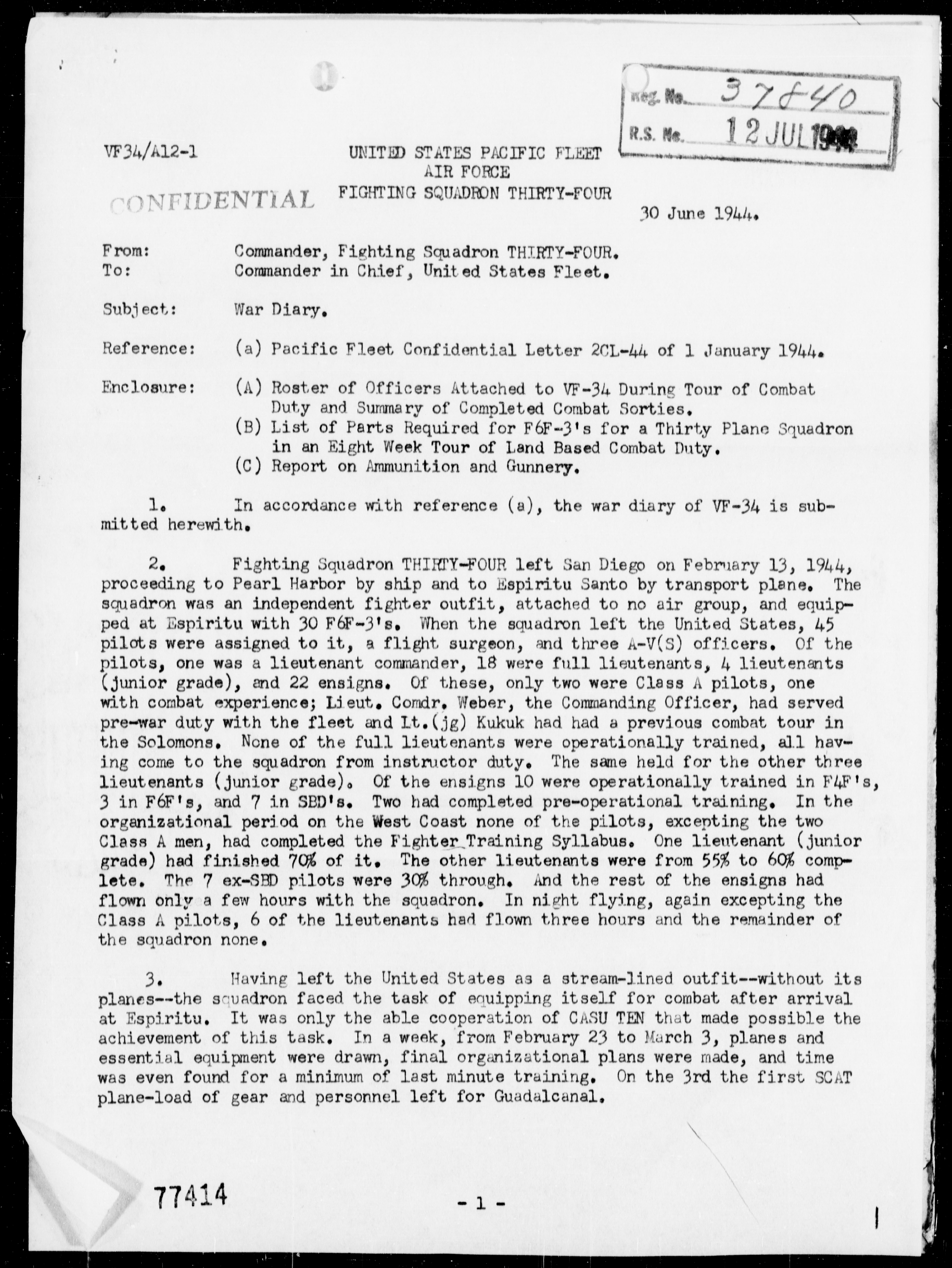 - The National Archive Catalogue War Diary of Fighting Squadron 34